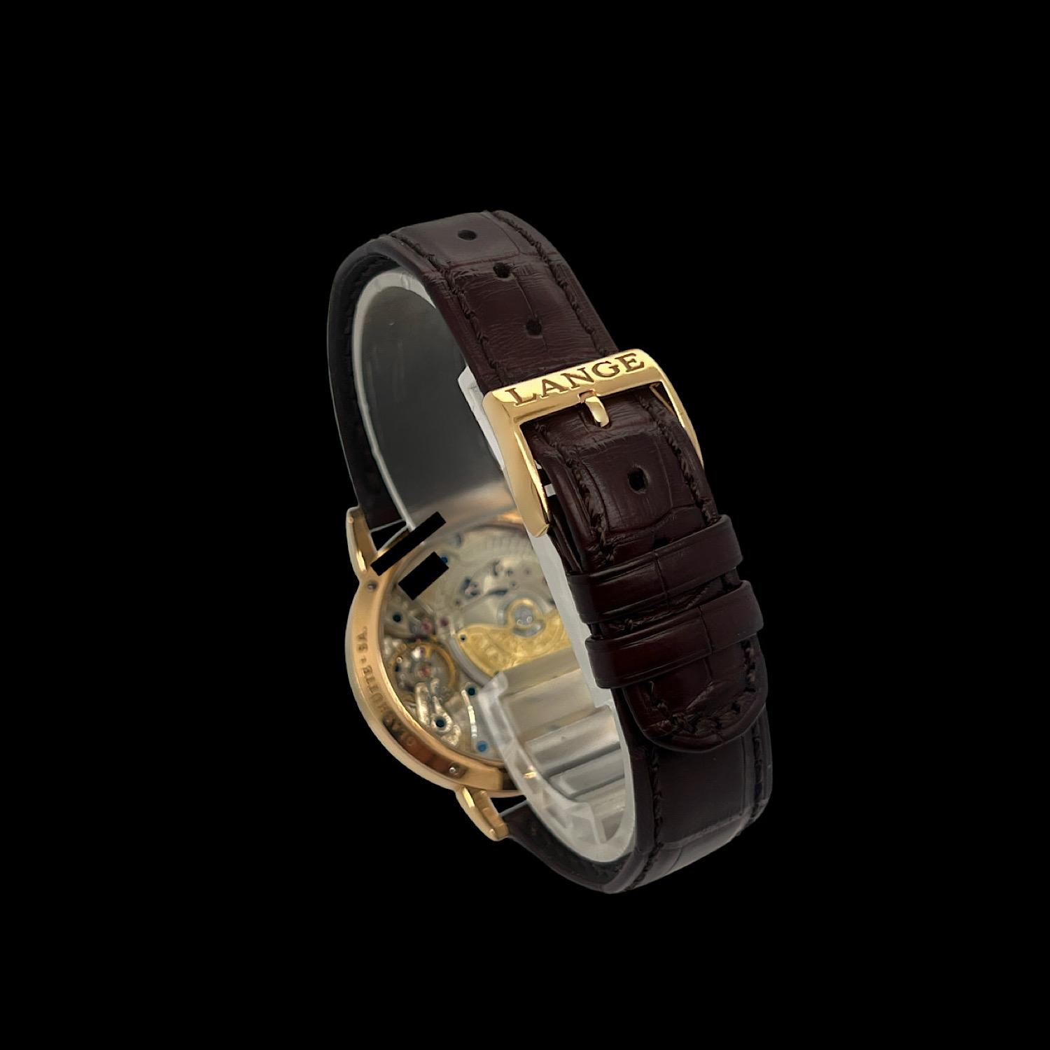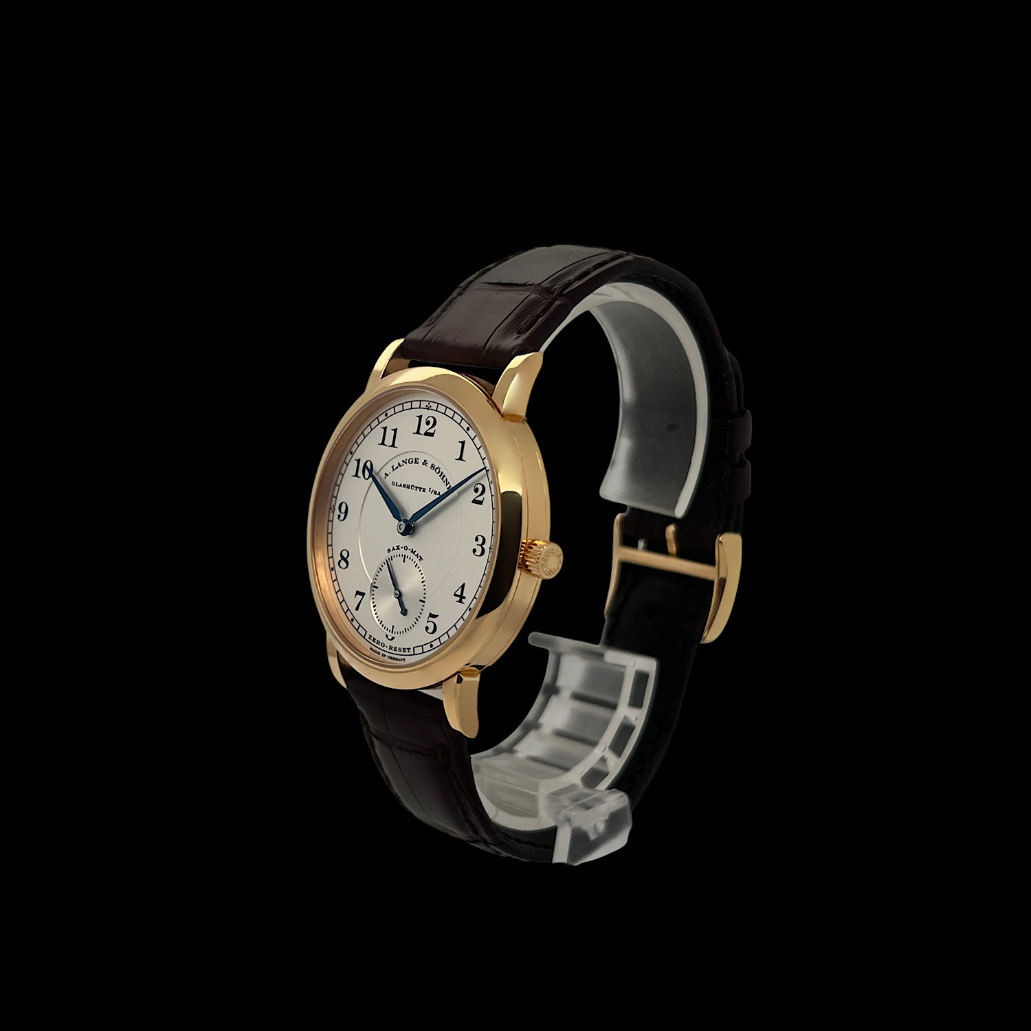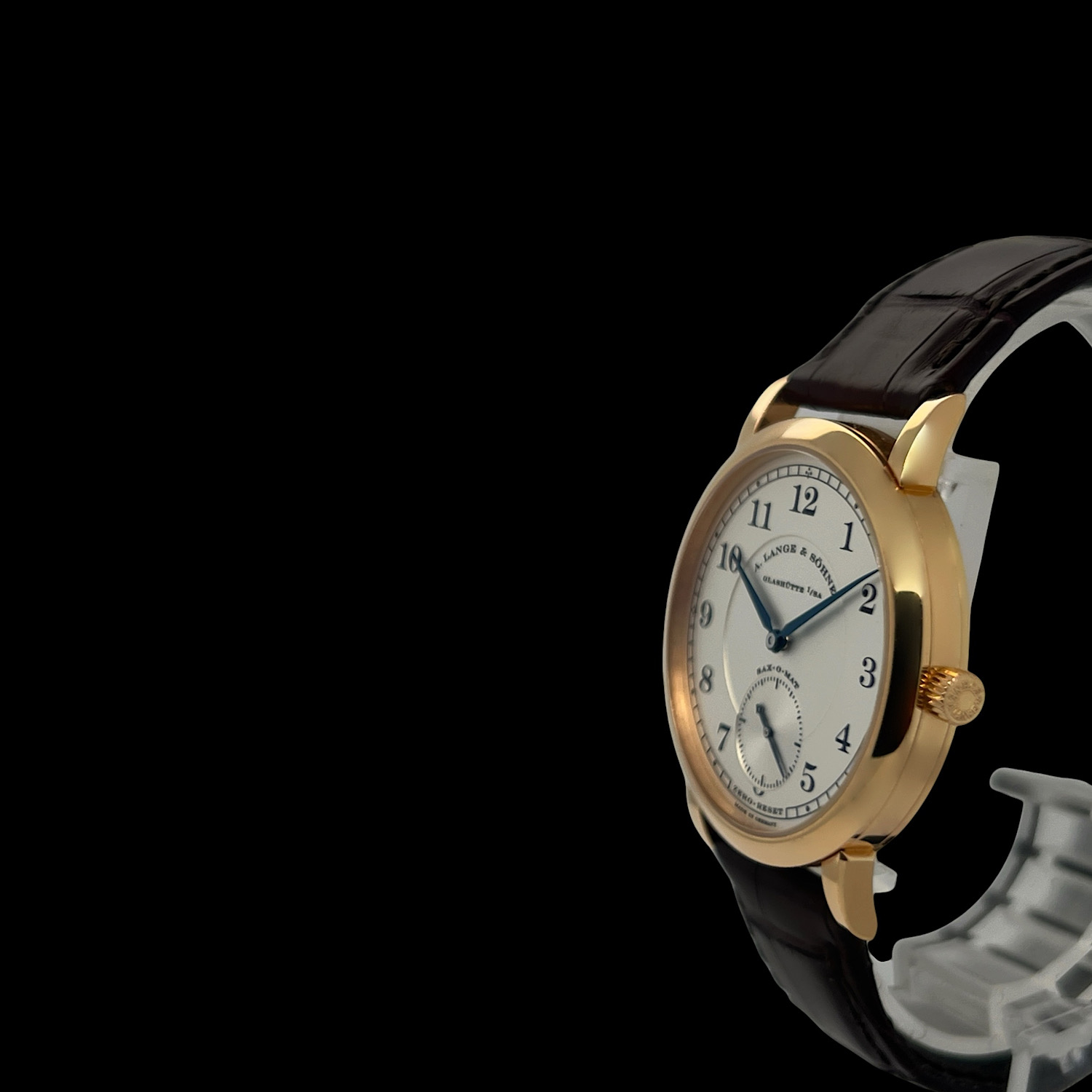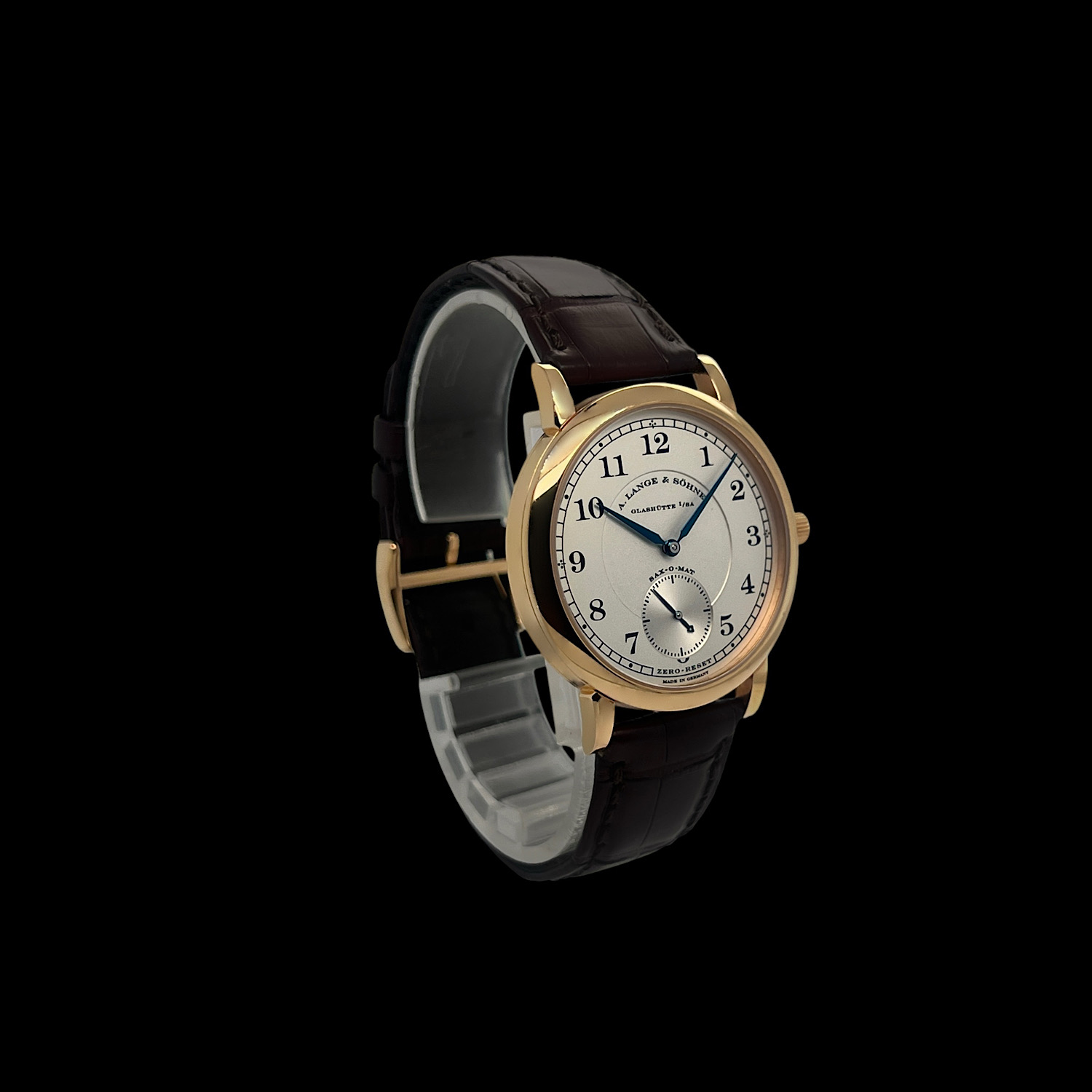 Das A. Lange & Söhne Lederarmband befindet sich in sehr gutem Zustand, es ist die originale Dornschließe aus 18-karätigem Gelbgold montiert.