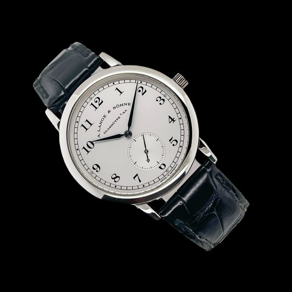 Abgerundet wird dieses außergewöhnliche Stück durch das orignale, schwarze Lederarmband mit der typischen minimalistischen A. Lange & Söhne Dornschließe aus 950er Platin, das dem Zeitmesser eine unvergleichliche Eleganz verleiht.