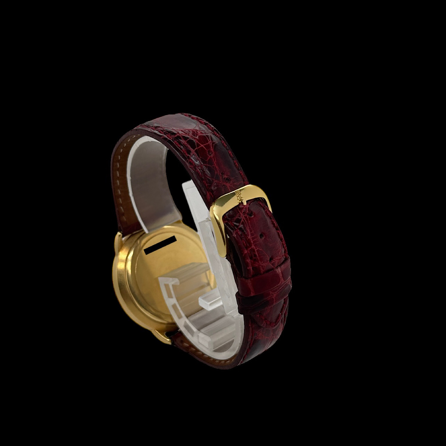Das Gehäuse aus 18-karätigem Gelbgold befindet sich in einem sehr schönen Zustand. Grobe Tragespuren sind nicht erkennbar.