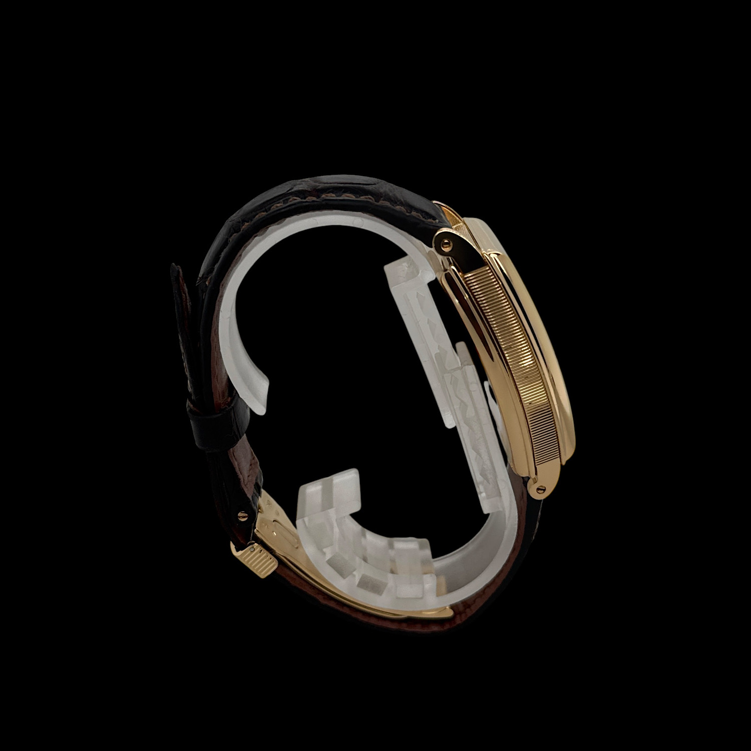 Das Gehäuse besteht aus 18-karätigem Gelbgold und befindet sich in einem sehr guten Zustand.