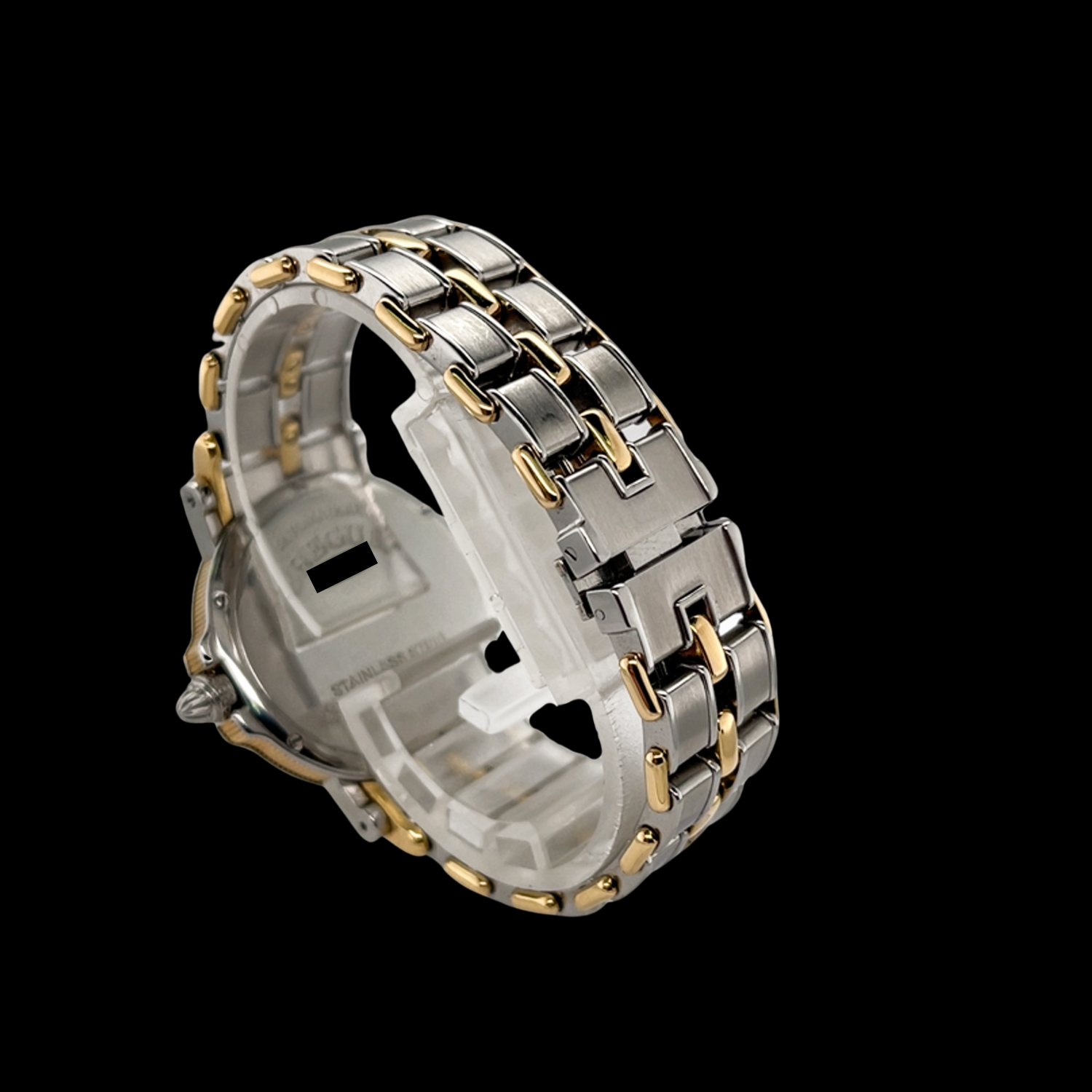 Das Gehäuse aus Edelstahl und 18-karätigem Weißgold befindet sich in einem gepflegten Zustand.