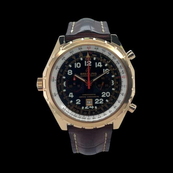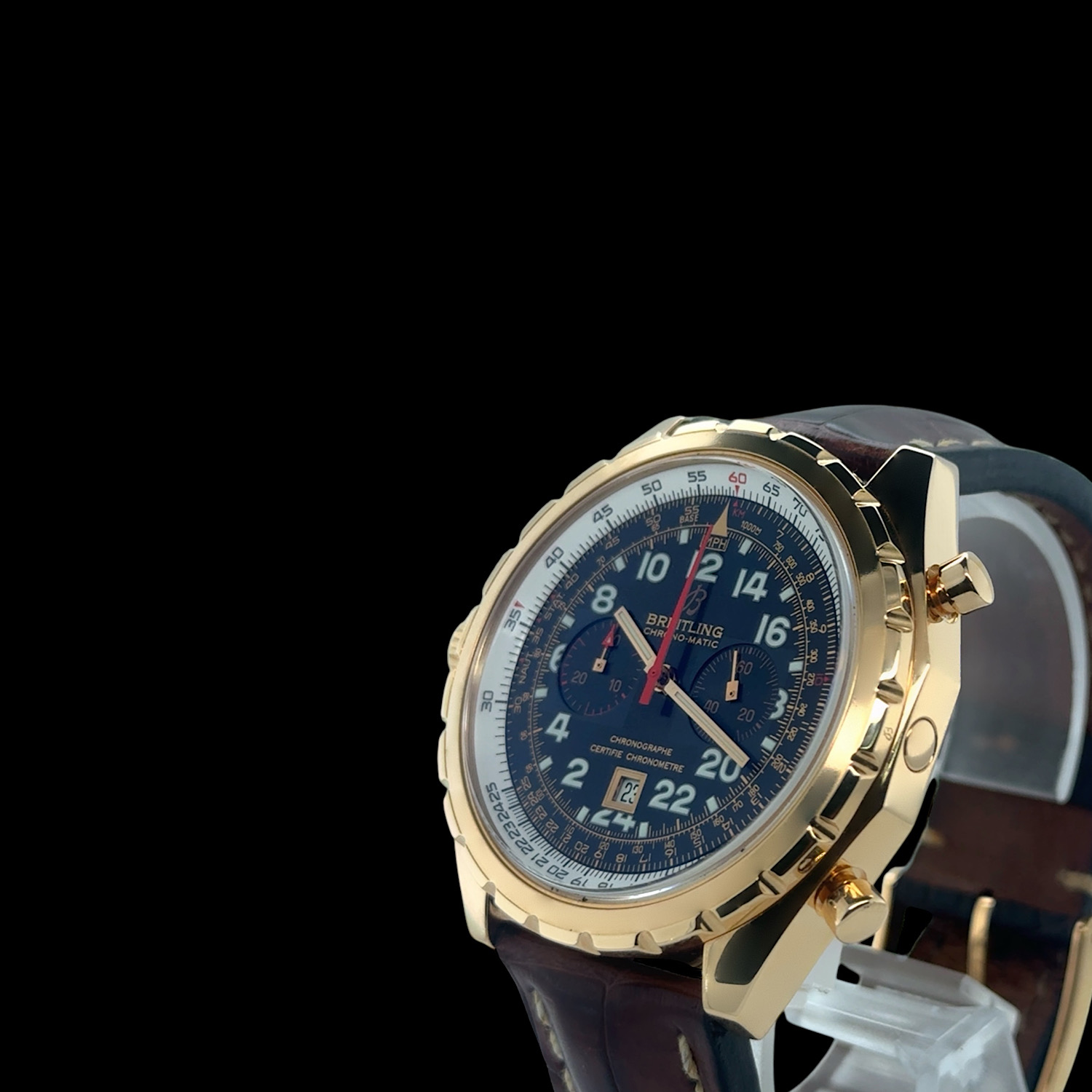 Die Breitling Chrono-Matic (Ref. H22360) verkörpert uhrmacherische Pionierleistung in reinster Form. Diese außergewöhnliche Zeitmaschine würdigt 1969, als Breitling mit dem ersten automatischen Chronographen mit linksseitiger Krone die Welt revolutionierte. Heute ersteht diese Innovation in streng limitierter Auflage von nur 250 Exemplaren aus massivem 18-karätigem Roségold zu neuem Leben.