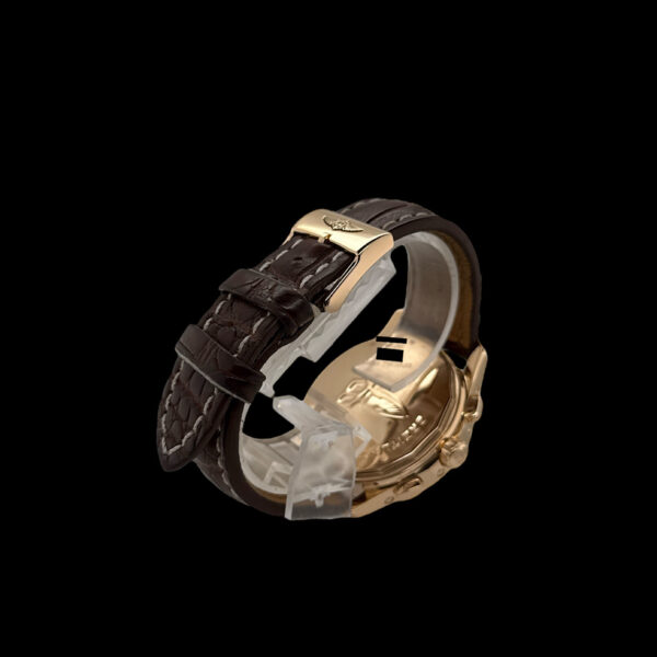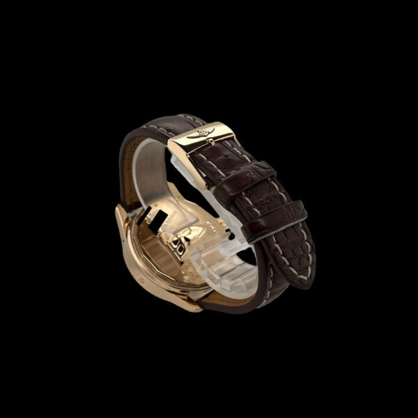 Das Breitling Lederarmband mit der originalen Breitling Dornschließe aus 18-karätigem Rotgold befinden sich in einem sehr guten Zustand.