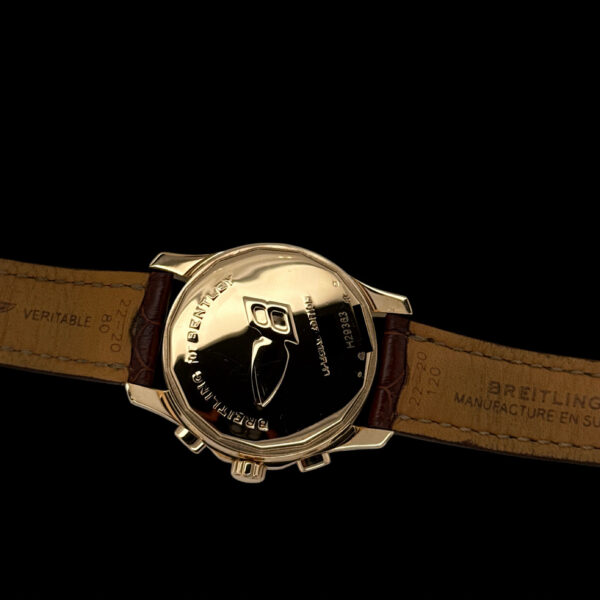 Die Breitling for Bentley Mark VI Complications 29 mit der begehrten Referenz H29363 vereint auf meisterhafte Weise Schweizer Uhrmachertradition mit der legendären Eleganz britischer Automobilkunst. Als eine der weltweit nur 250 limitierten Editionen in kostbarem 18-karätigem Rotgold repräsentiert diese außergewöhnliche Luxusuhr das Höchste, was die Partnerschaft zwischen Breitling und Bentley zu bieten hat.