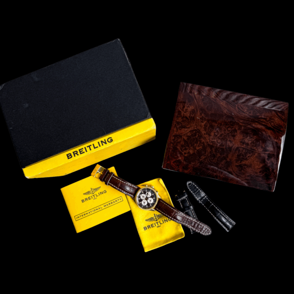 - Lieferumfang Breitling Garantiezertifikat aus 2012, Breitling Wurzelholzbox inkl. Umkarton, Poliertuch, Ersatzarmband