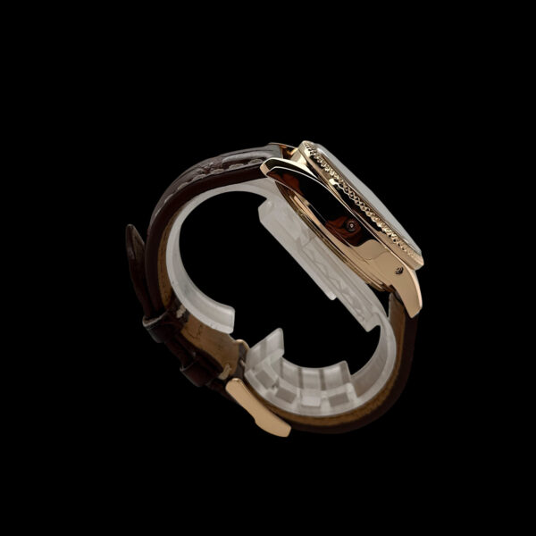 Das Gehäuse besteht aus 18-karätigem Rotgold und befindet sich in einem sehr guten Zustand.