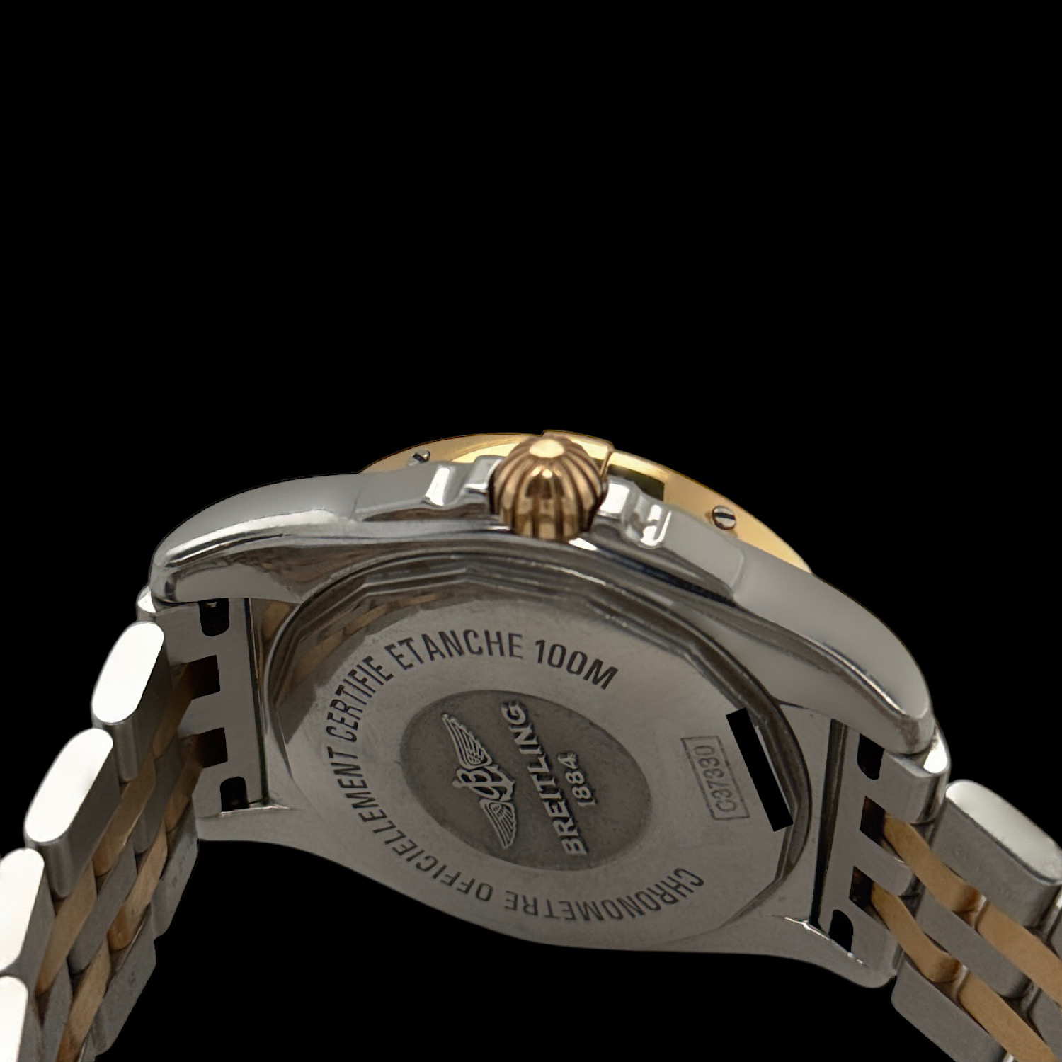 Das weiße Perlmutt-Zifferblatt entfaltet je nach Lichteinfall sein faszinierendes Farbspiel, während die Brillantindizes dezente Akzente setzen, die nie aufdringlich wirken. Die Kombination aus Edelstahl und Roségold unterstreicht den zeitlosen Charakter dieser Automatikuhr, die gleichermaßen Sportlichkeit und Eleganz ausstrahlt. So entsteht eine Breitling-Damen-Uhr, die weit mehr ist als ein Accessoire: ein vielseitiger Luxus-Zeitmesser für alle, die sportliches Design, edles Bicolor-Finish und feminine Eleganz in einer hochwertigen Schweizer Uhr suchen.