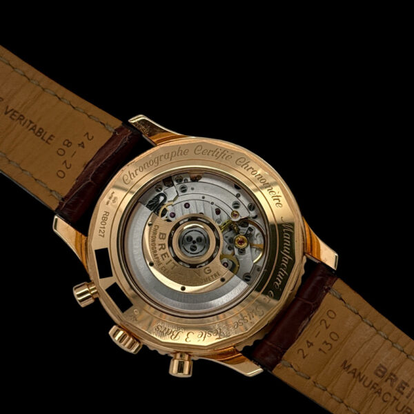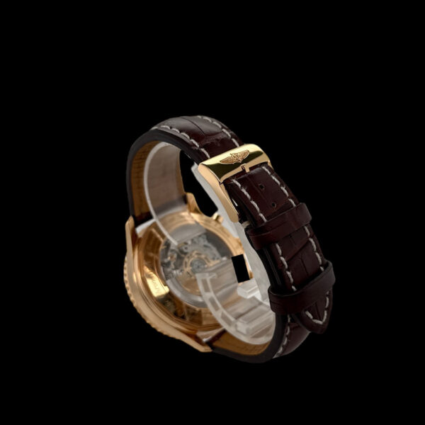 Das Breitling Lederarmband und die Dornschließe aus 18-karätigem Roségold befinden sich in einem sehr guten Zustand.