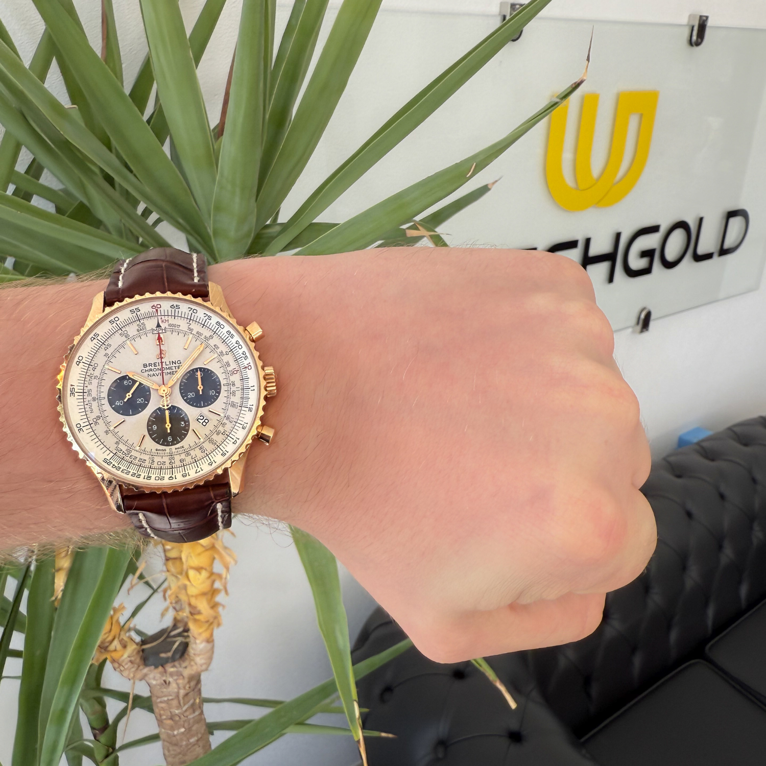 Die Breitling Navitimer 1 B01 Chronograph in 18-karätigem Roségold ist weit mehr als nur eine Uhr – sie ist ein Statement für Stil, Präzision und luxuriösen Geschmack. Seit ihrer Ernennung zur offiziellen Fliegeruhr der internationalen Pilotenvereinigung AOPA im Jahr 1954 genießt die Breitling Navitimer einen legendären Ruf unter Uhrenliebhabern und Piloten gleichermaßen. Fast 70 Jahre später ist sie dank ihres unverkennbaren Designs und ihrer hohen Funktionalität zu einer wahren Ikone in der Welt der mechanischen Uhren geworden.