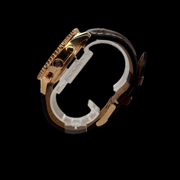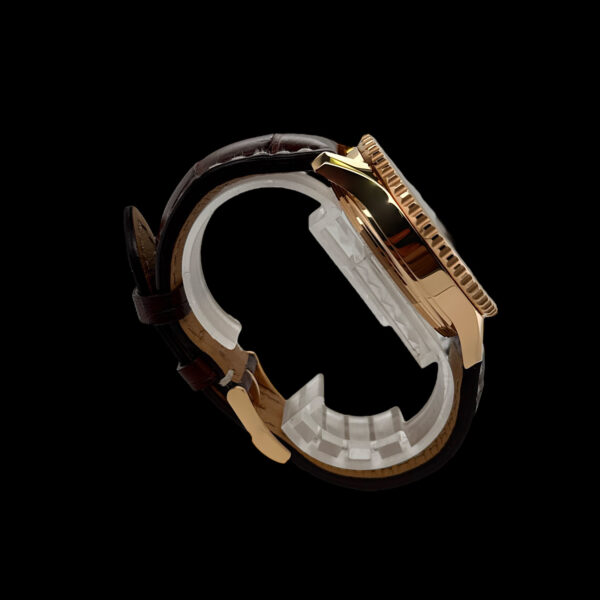 Das Gehäuse besteht aus 18-karätigem Roségold und befindet sich in einem sehr guten Zustand.