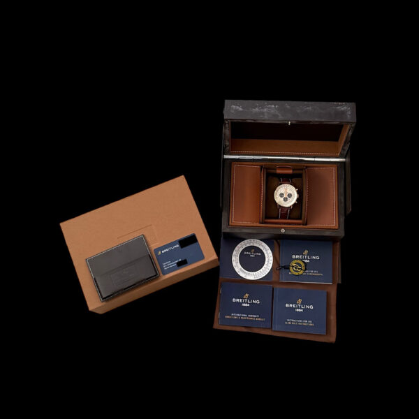 - Lieferung inkl. Breitling Uhrenbox mit Umkarton, Breitling Garantiekarte aus 09/2023, Breitling Chronometer-Zertifikat, Breitling Booklets und weiterem Zubehör