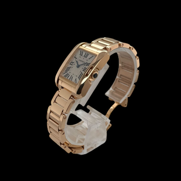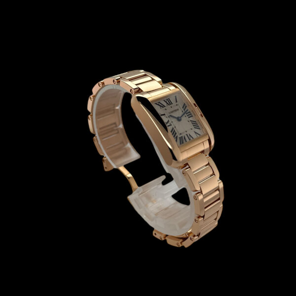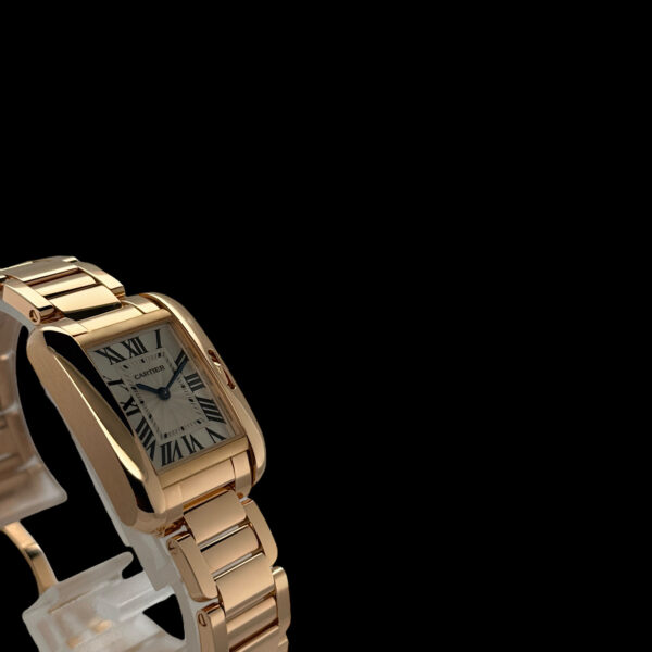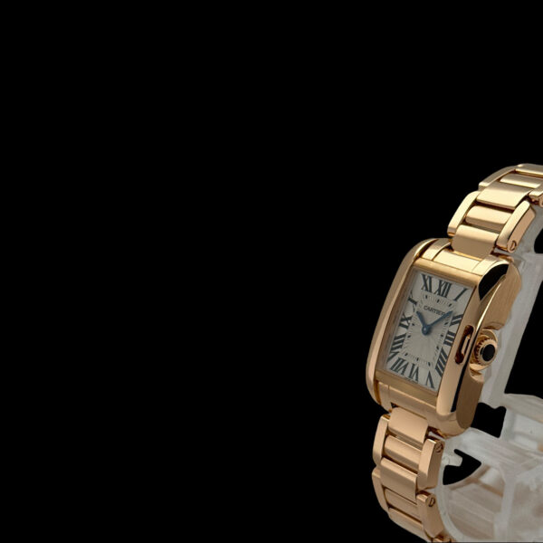 Diese wunderschöne Tank Anglaise (Modell W5310013) präsentiert sich in der begehrten Small-Größe aus warmem 18-karätigem Roségold. Mit ihren kompakten Maßen von 22,7 x 30,2 mm sitzt sie perfekt am Handgelenk – weder zu groß noch zu klein. Das vollständig aus massivem Roségold gefertigte Armband macht diese Uhr zu etwas ganz Besonderem.