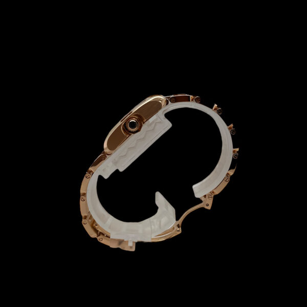 Im Inneren tickt das präzise Cartier-Quarzwerk Kaliber 057 – zuverlässig, wartungsarm und immer punktgenau. Die elegante Doppelfaltschließe am Armband öffnet und schließt sich diskret und sicher.