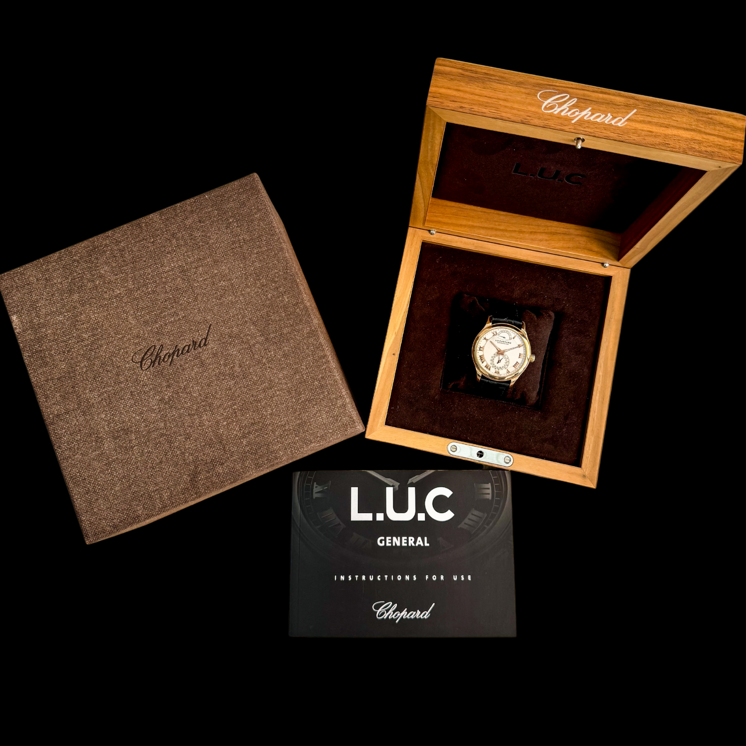Das Herzstück bildet das Handaufzugskaliber L.U.C 98.01 L – ein meisterhaft veredeltes COSC-zertifiziertes Chronometerwerk, das zusätzlich das begehrte Genfer Siegel trägt. Die außergewöhnliche Gangautonomie von neun Tagen macht es zu einem der technisch anspruchsvollsten Werke seiner Zeit.