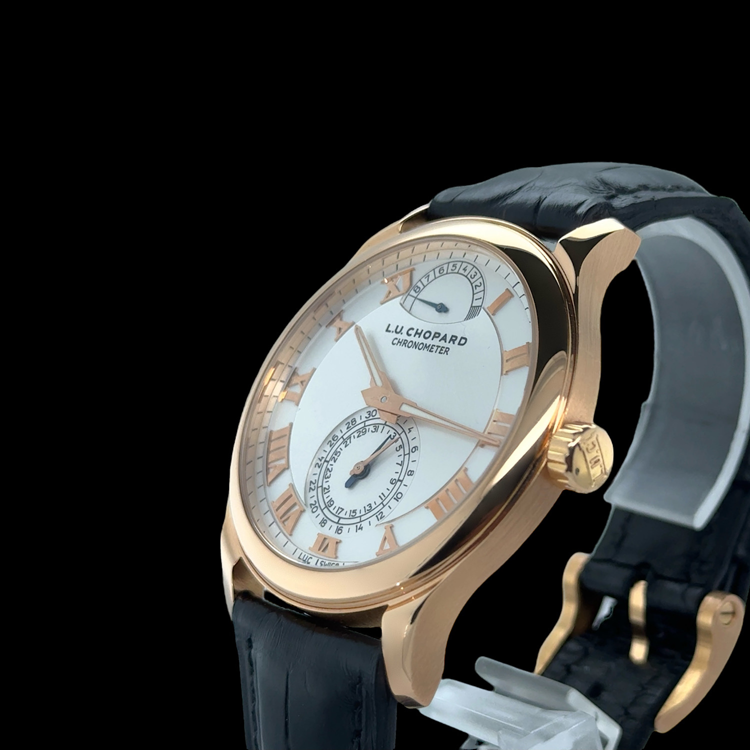Das Manufakturkaliber L.U.C 98.01‑L wurde durch unseren Uhrmacher geprüft. Es läuft absolut zuverlässig und überzeugt durch seine außergewöhnliche Gangreserve und feinste Veredelung.