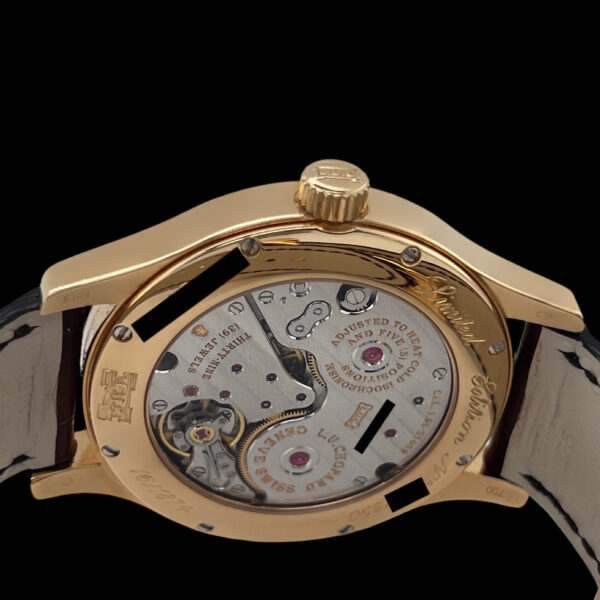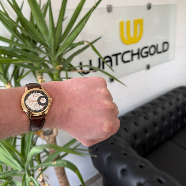 Das Gehäuse aus 18-karätigem Gelbgold befindet sich in sehr gutem Zustand mit nur geringen Tragespuren.