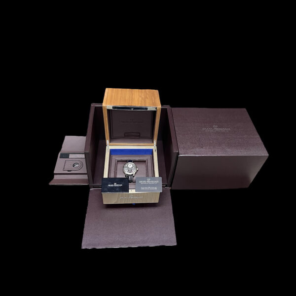 Zum Lieferumfang dieses Full Sets gehört die originalen Girard-Perregaux Uhrenbox aus Holz, die Girard-Perregaux Garantiekarte, eine Lupe und weiteres Zubehör.