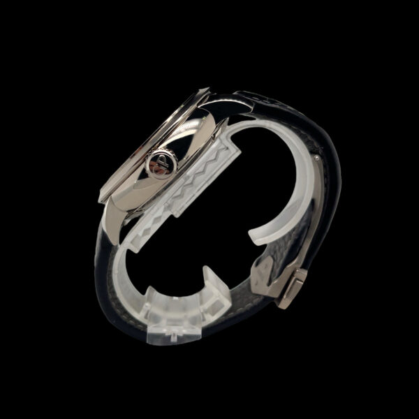 Bitte beachten Sie, dass wir aufgrund der CITES-Bestimmungen keine Lederarmbänder aus Krokodil, Eidechse, Strauß usw. außerhalb der Europäischen Union versenden können. Sie erhalten Ihre Uhr stattdessen mit einem normalen Kalbslederarmband!