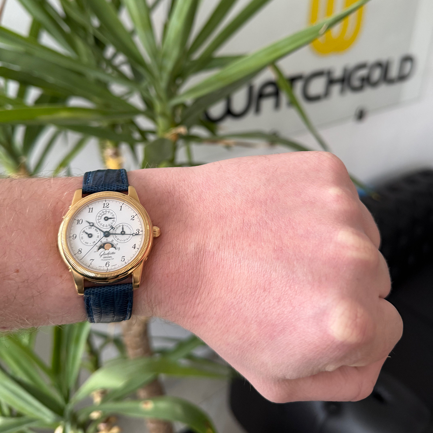 Aufgrund der CITES-Bestimmungen können Lederarmbänder aus geschützten Tierarten (z. B. Krokodil, Eidechse, Strauß) nicht außerhalb der EU versendet werden. In diesen Fällen liefern wir die Uhr mit einem hochwertigen Kalbslederarmband.