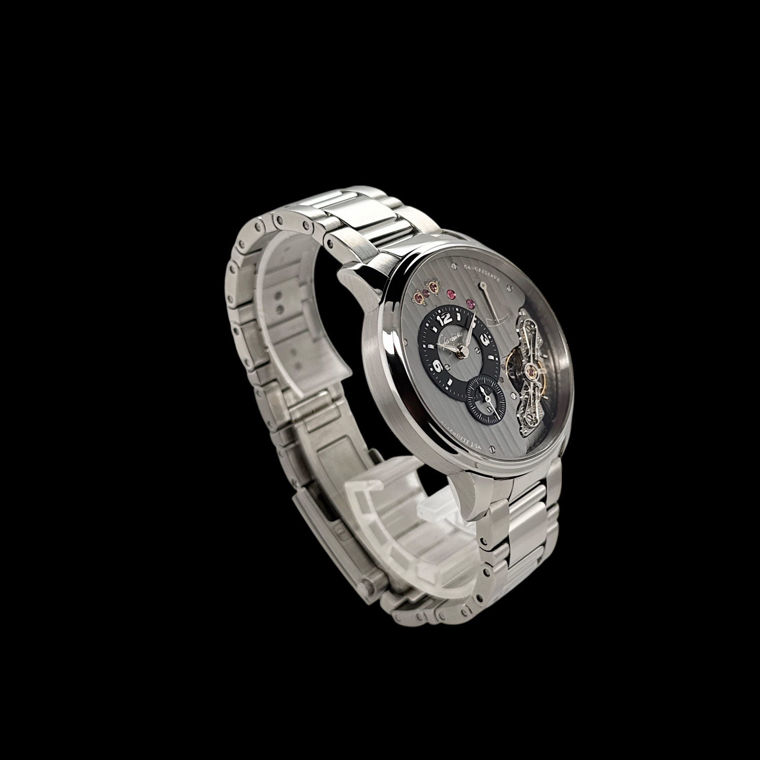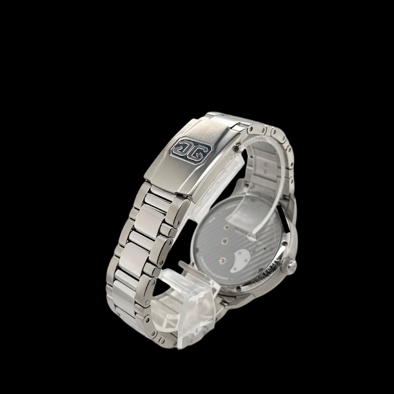 Besonders bei dieser Referenz ist das satiniert-polierte Edelstahl-Gliederarmband mit Faltschließe, das der PanoInverse einen sportlich-eleganten Charakter verleiht. Diese Kombination wurde später aus dem Programm genommen, was dieses Exemplar für Kenner besonders interessant macht. Die PanoInverse vereint höchste Uhrmacherkunst mit modernem Design und richtet sich an anspruchsvolle Sammler, die technische Raffinesse zu schätzen wissen. Zum Lieferumfang gehört die originale Uhrenbox mit altersüblichen Gebrauchsspuren.