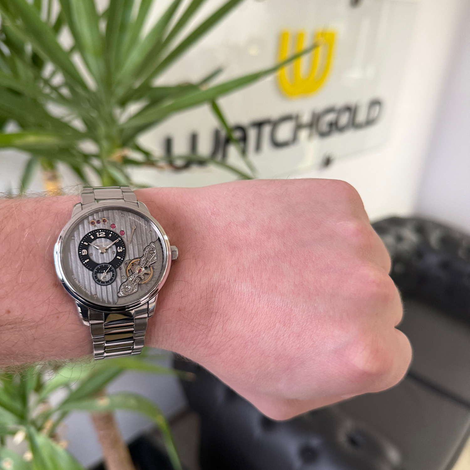 Beide Saphirgläser (Vorder- und Rückseite) sind ohne nennenswerte Kratzer und bieten freie Sicht auf das Uhrwerk.
