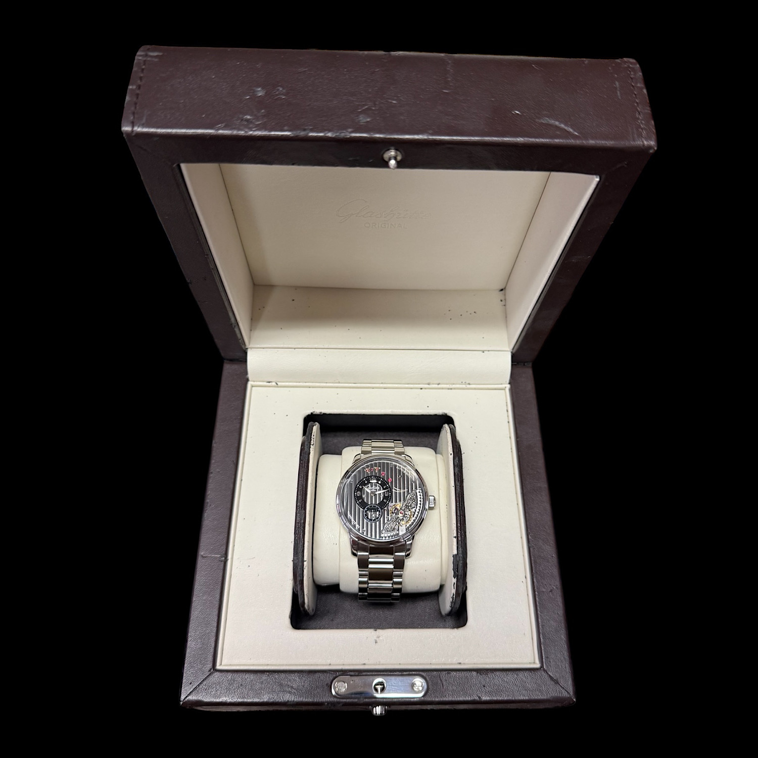 - Lieferumfang: Glashütte Original Uhrenbox im altersüblichen Zustand