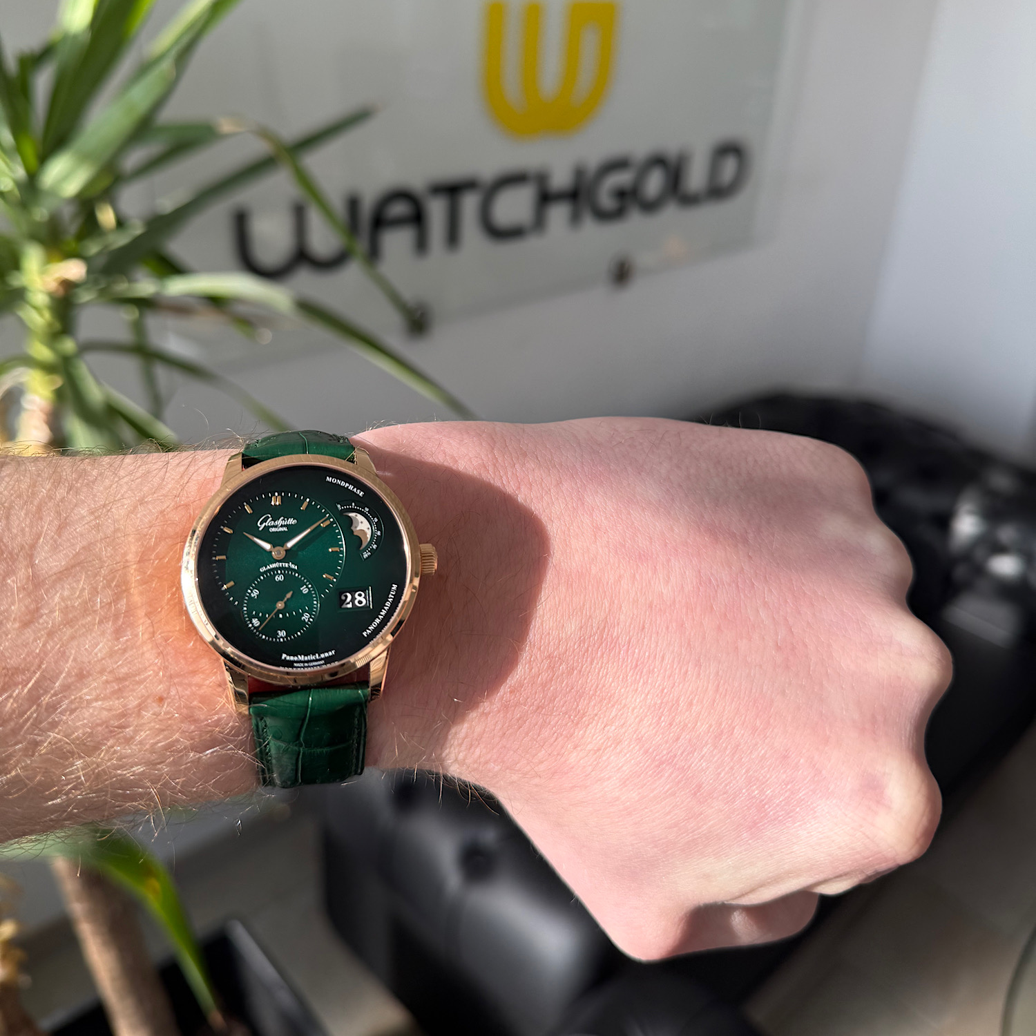 - waldgrünes Zifferblatt – mit elegantem Farbverlauf