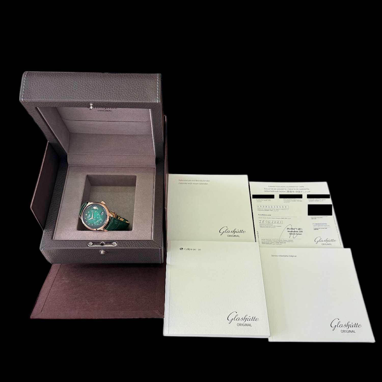 - Lieferumfang: Glashütte Original Box inkl. Umkarton, Papiere aus 2021, Bedienungsanleitung und Booklets