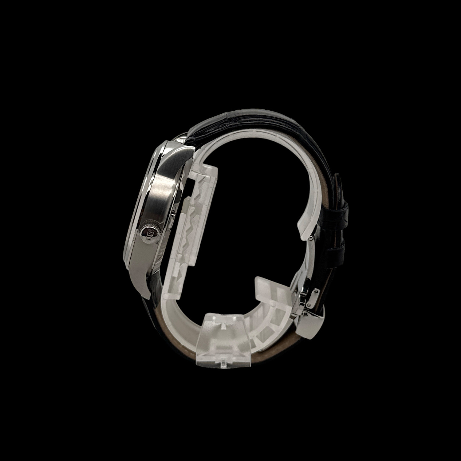 Aufgrund der CITES-Bestimmungen können Lederarmbänder aus geschützten Tierarten (z. B. Krokodil, Eidechse, Strauß) nicht außerhalb der EU versendet werden. In diesen Fällen liefern wir die Uhr mit einem hochwertigen Kalbslederarmband.