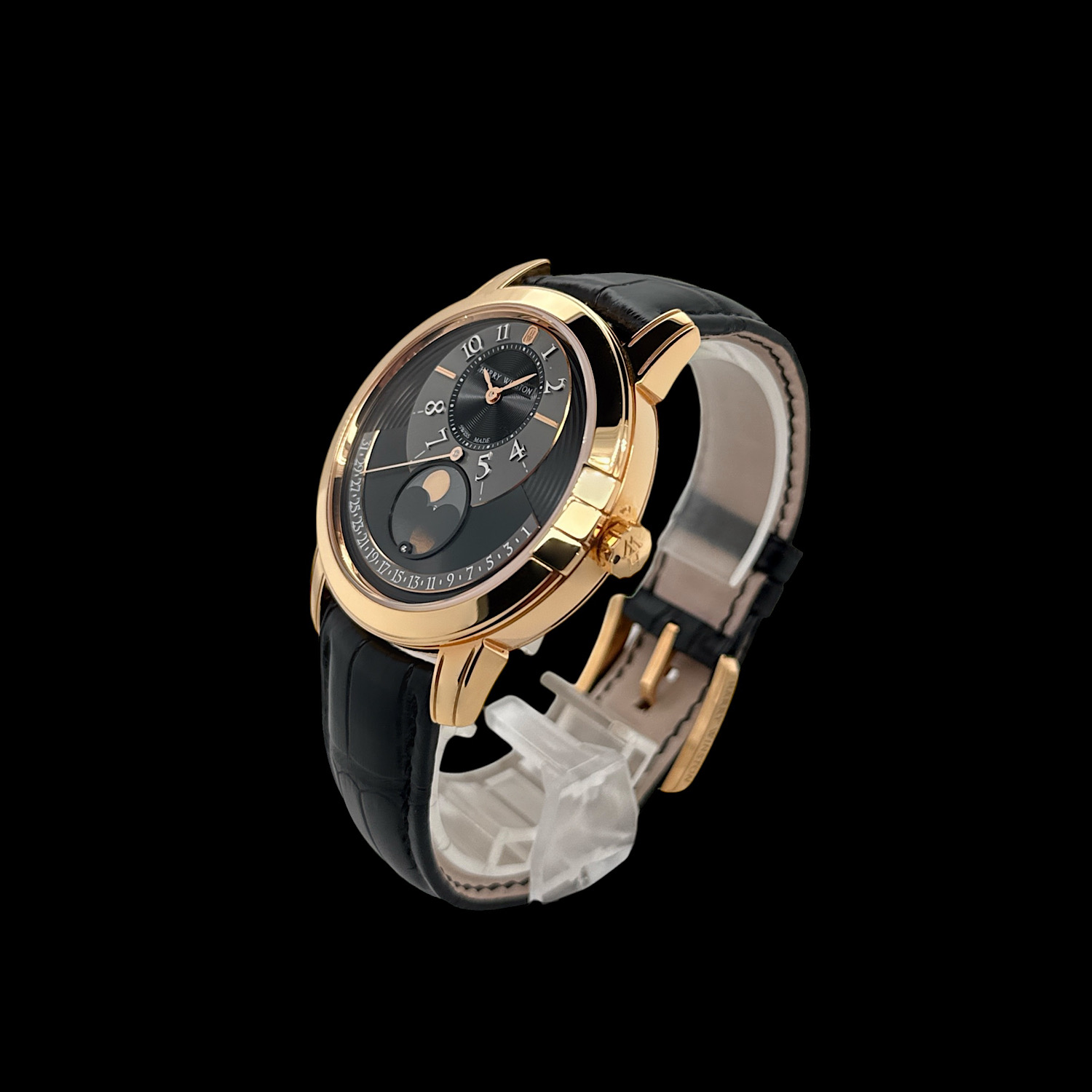 - Mondphasen-Komplikation mit retrograder Datumsanzeige
