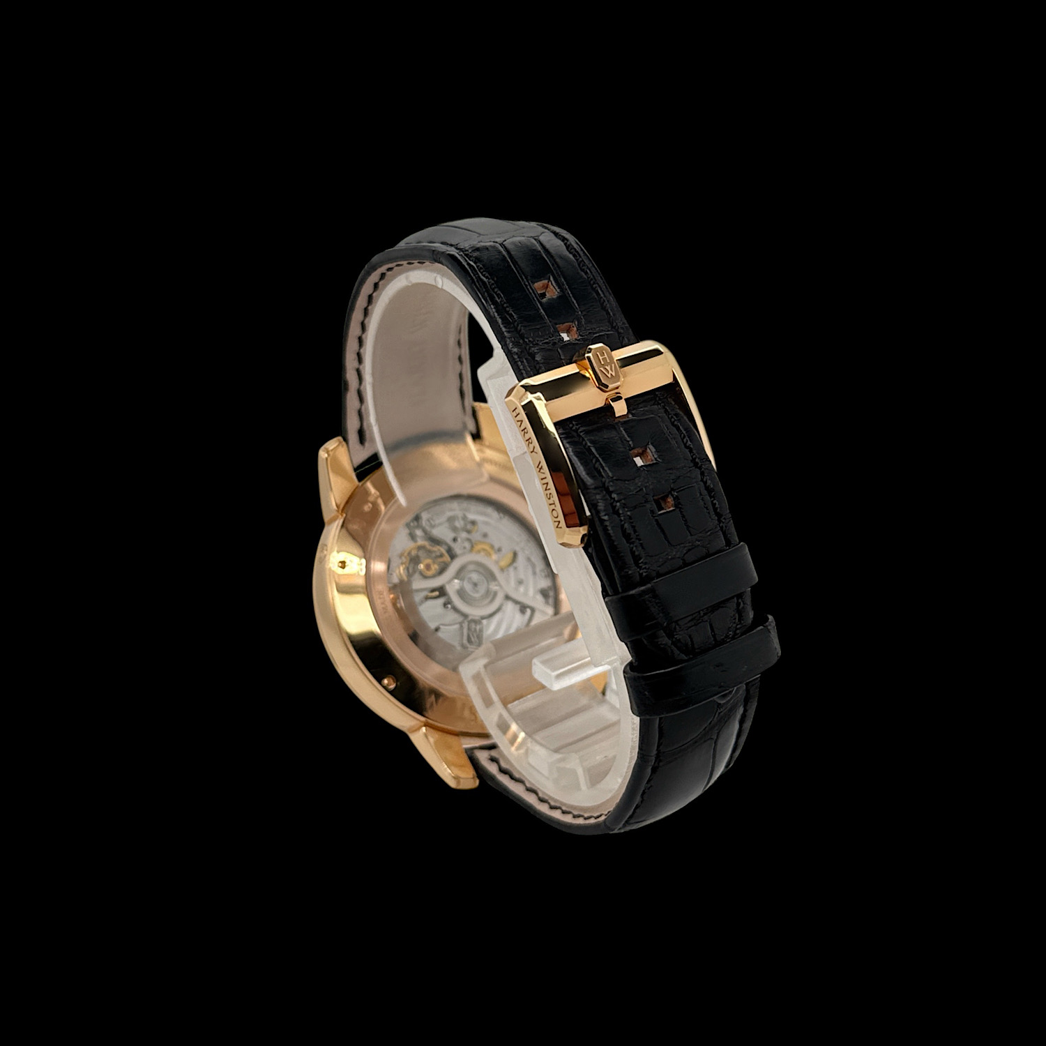 Das Gehäuse aus 18-karätigem Roségold befindet sich in einem äußerst gepflegten Zustand.