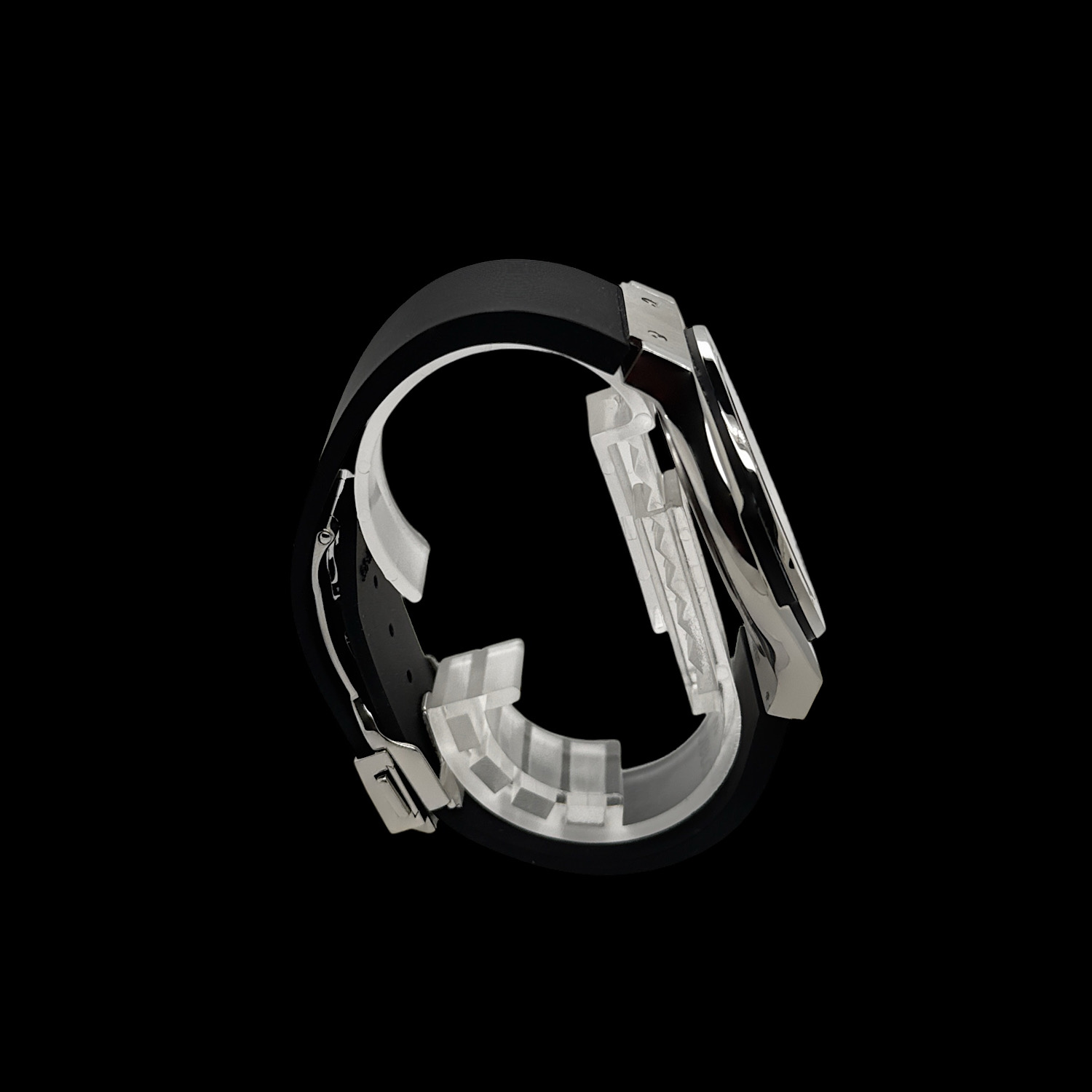 - Ultradünnes, nur 9mm hohes Titangehäuse, poliert und satiniert