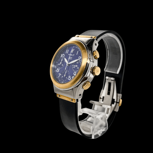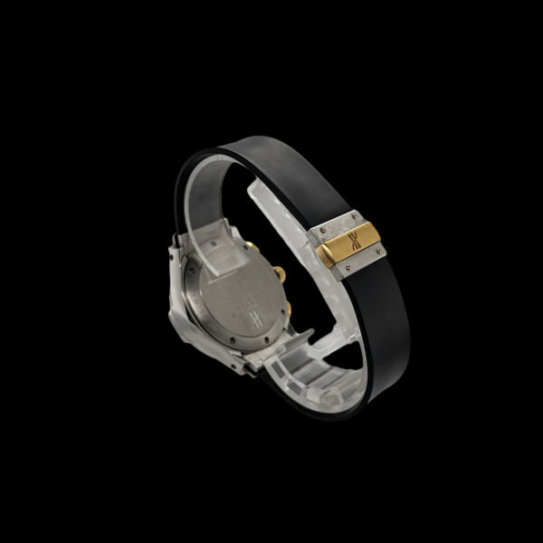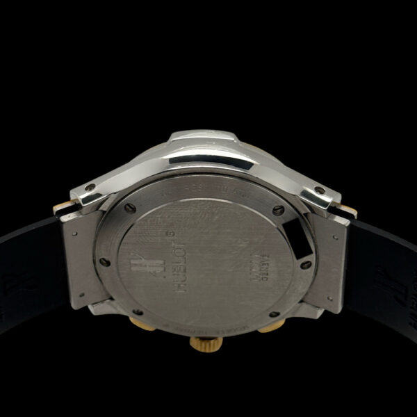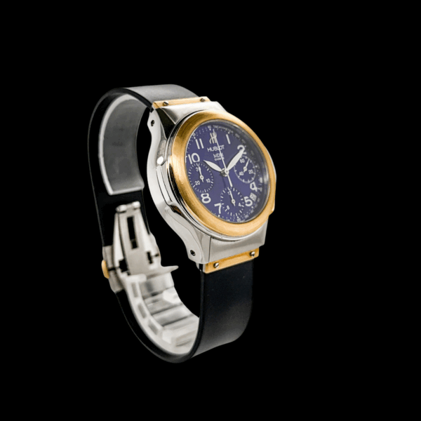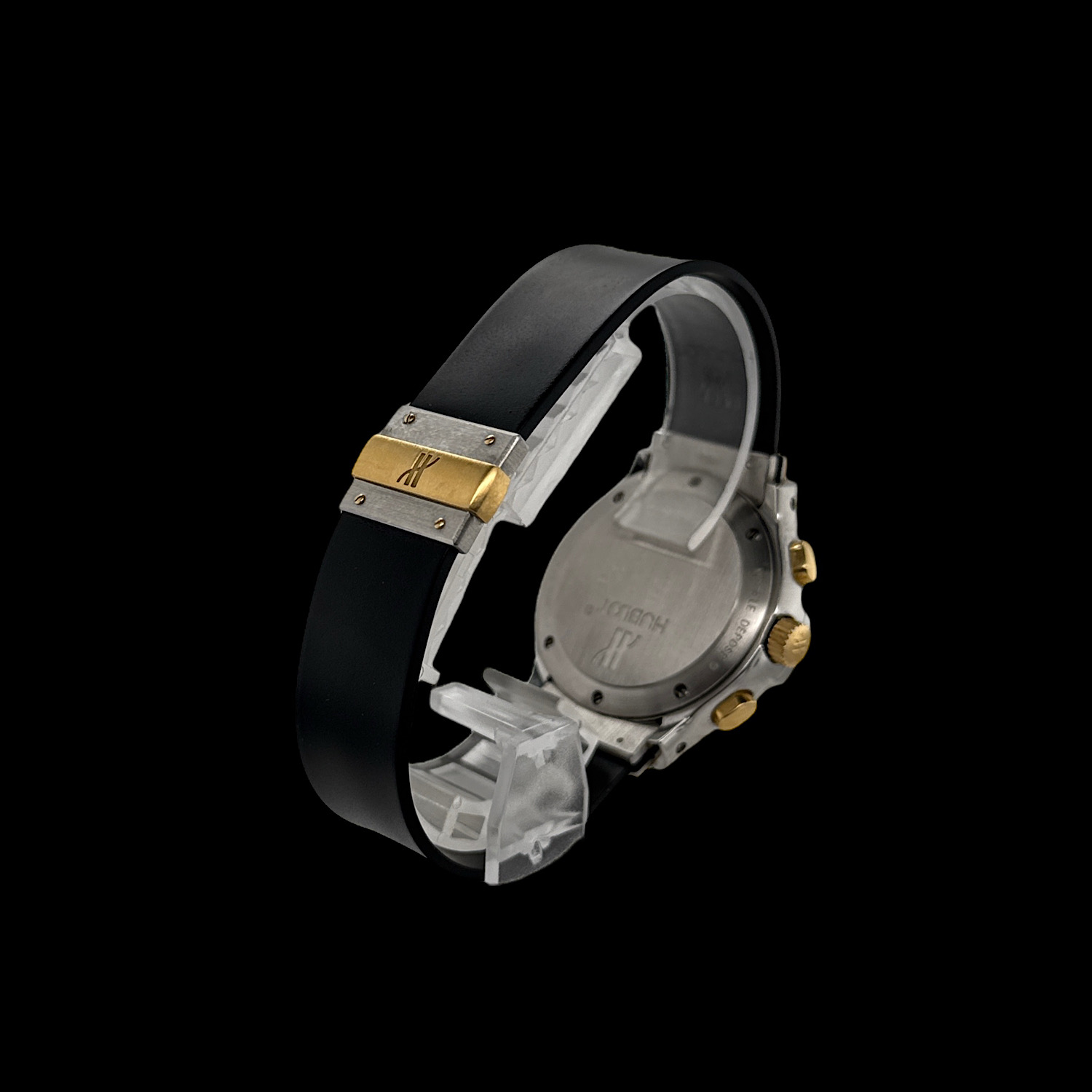 Das schwarze Hublot-Kautschukband mit der Butterfly-Faltschließe aus Stahl/Goldbefindet sich in sehr gutem Zustand.