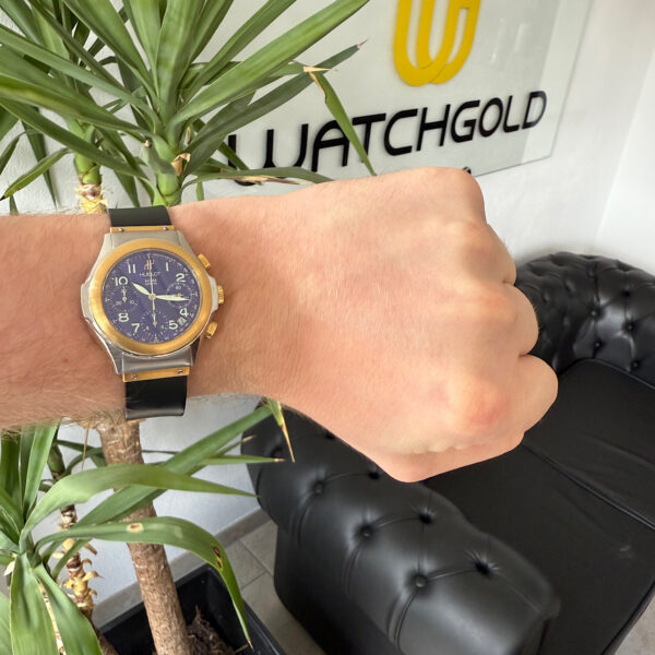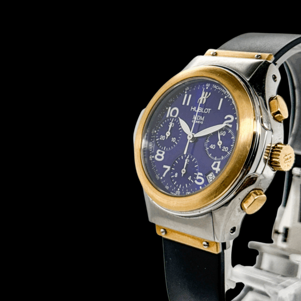 Mit 40 mm Durchmesser (ohne Krone) trifft die MDM die ideale Gehäusegröße: präsent, aber nicht aufdringlich, diskret unter der Manschette und dennoch ausdrucksstark. Der sehr gute Gesamtzustand entspricht den Erwartungen anspruchsvoller Sammler klassischer Hublot-Ästhetik: ein charakterstarkes Statement zwischen Dress- und Sportswatch, das Hublots „Art of Fusion" in ursprünglicher Form erlebbar macht.