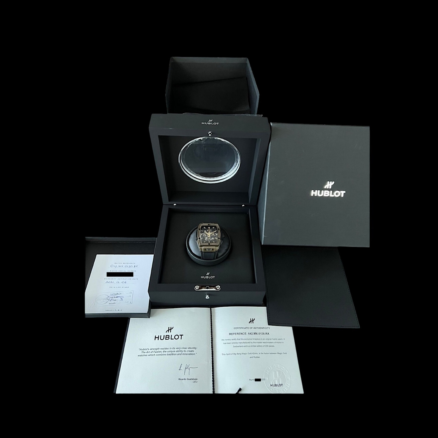 - Lieferumfang: Hublot-Uhrenbox inkl. Umkarton, Garantiekarte aus 12/2021, Zertifikat der Authentizität