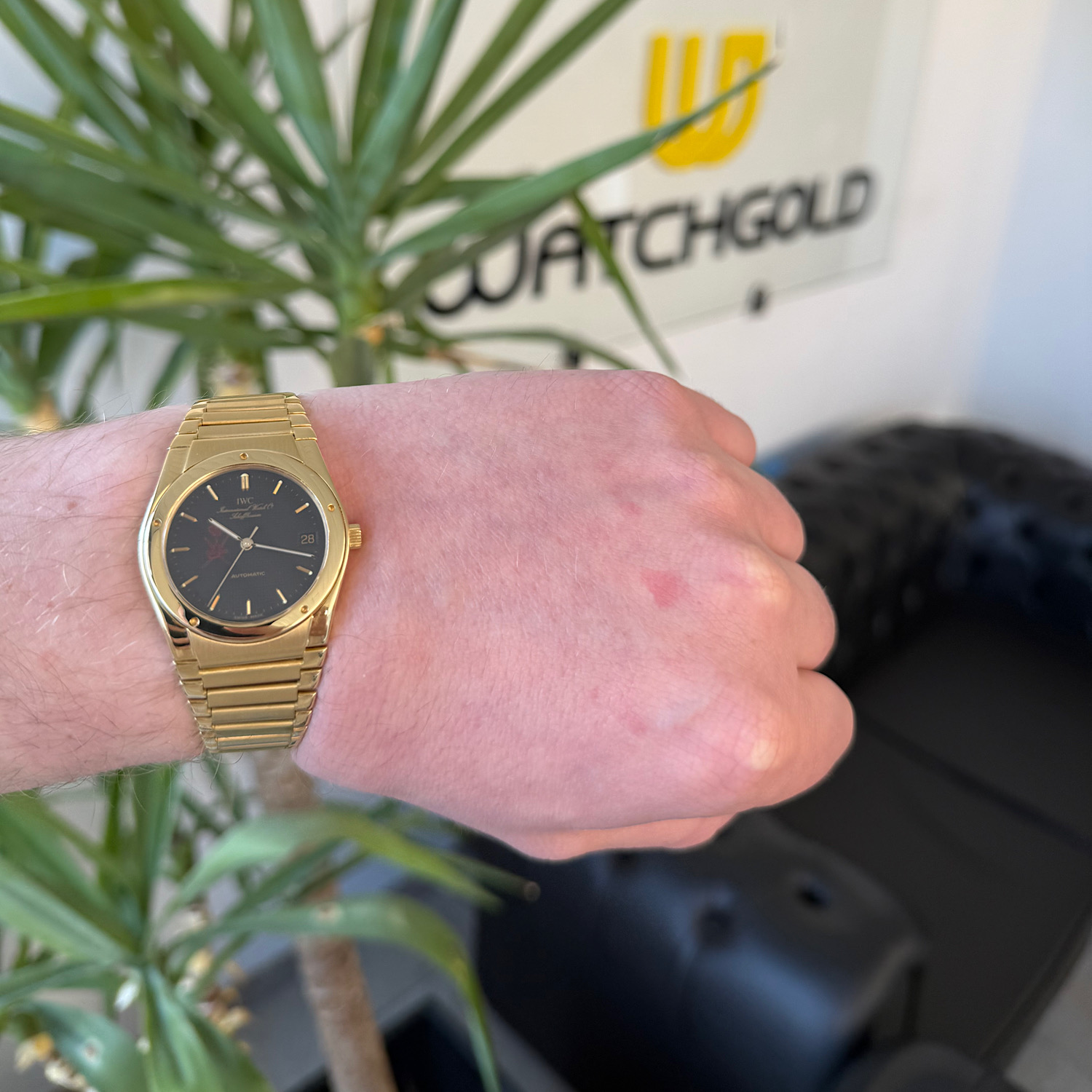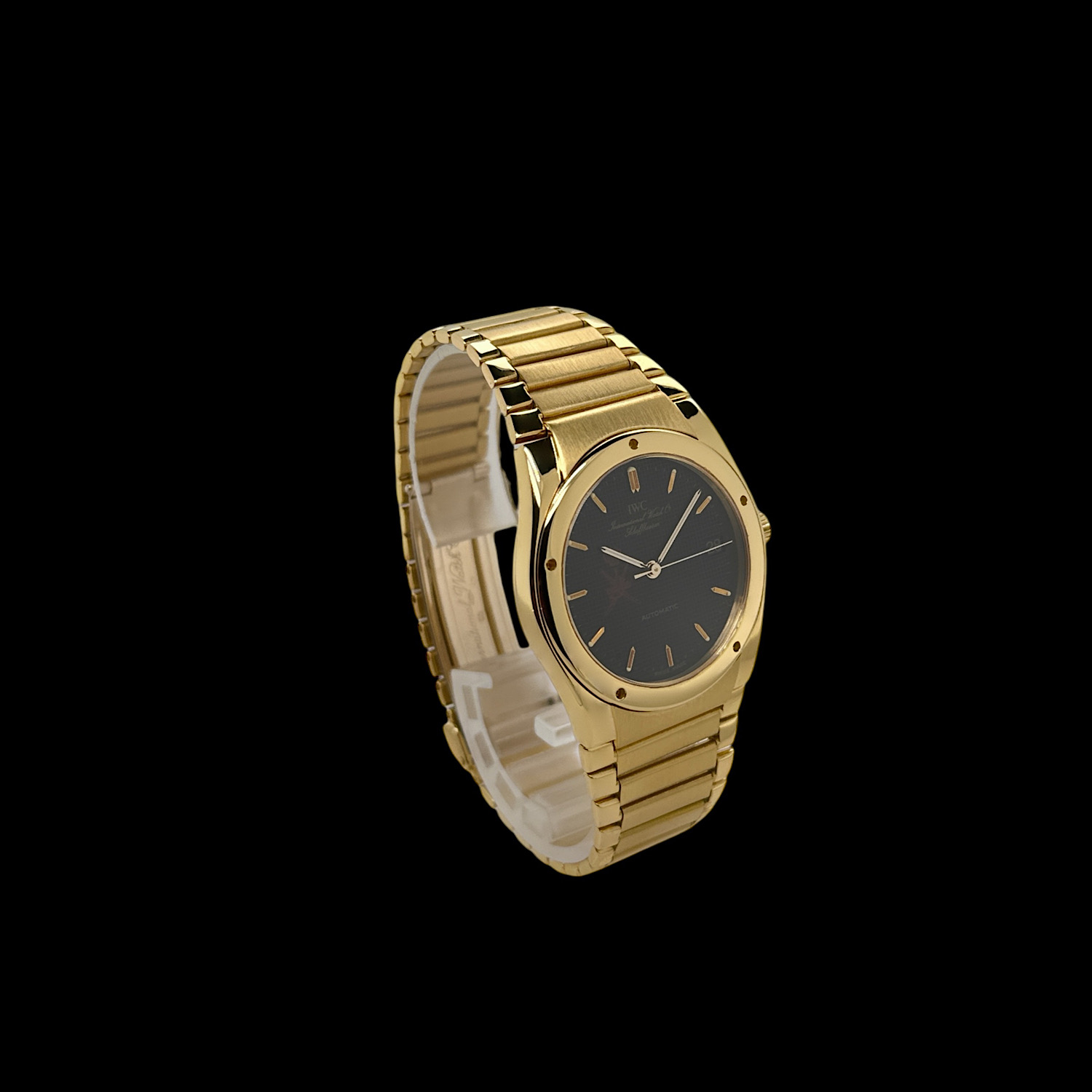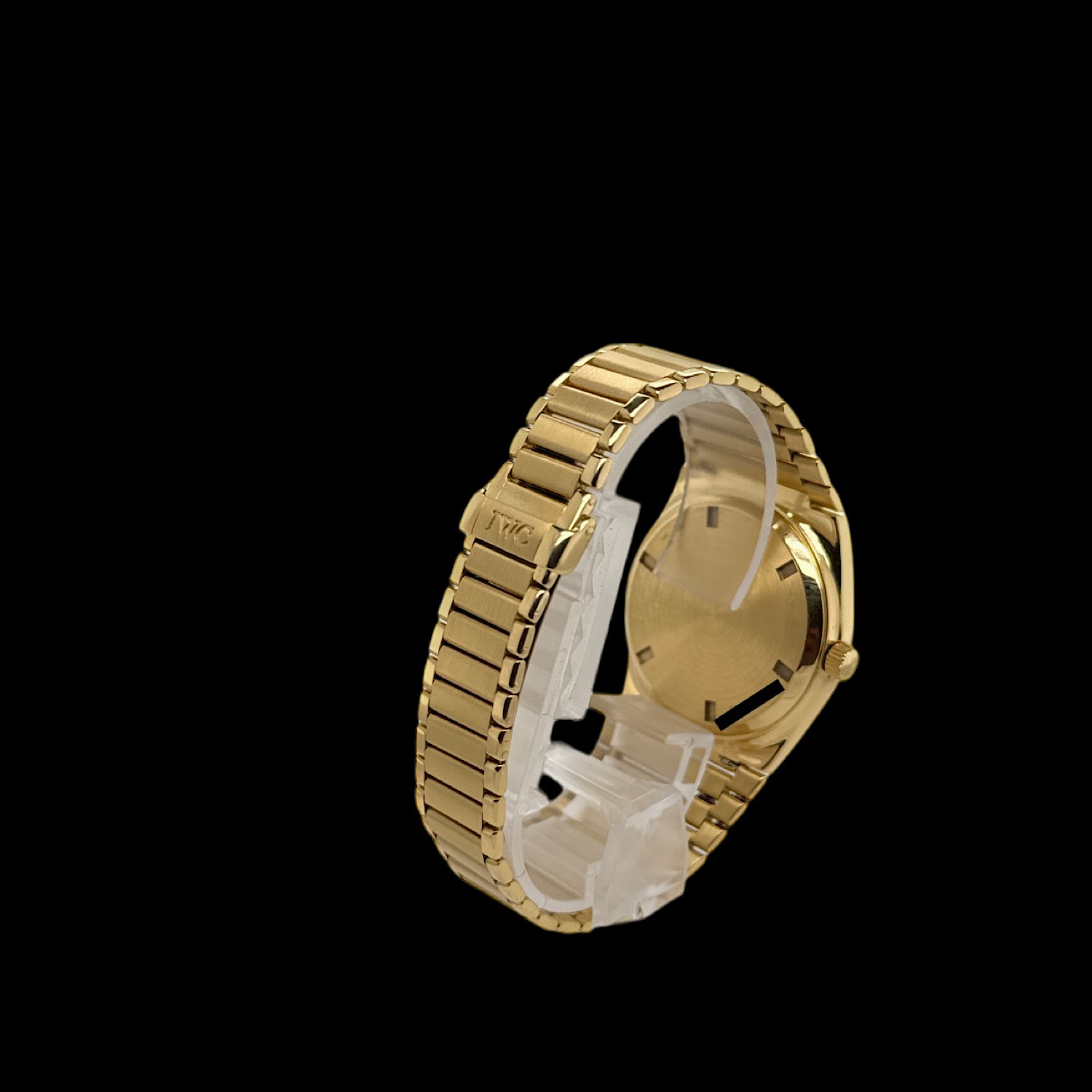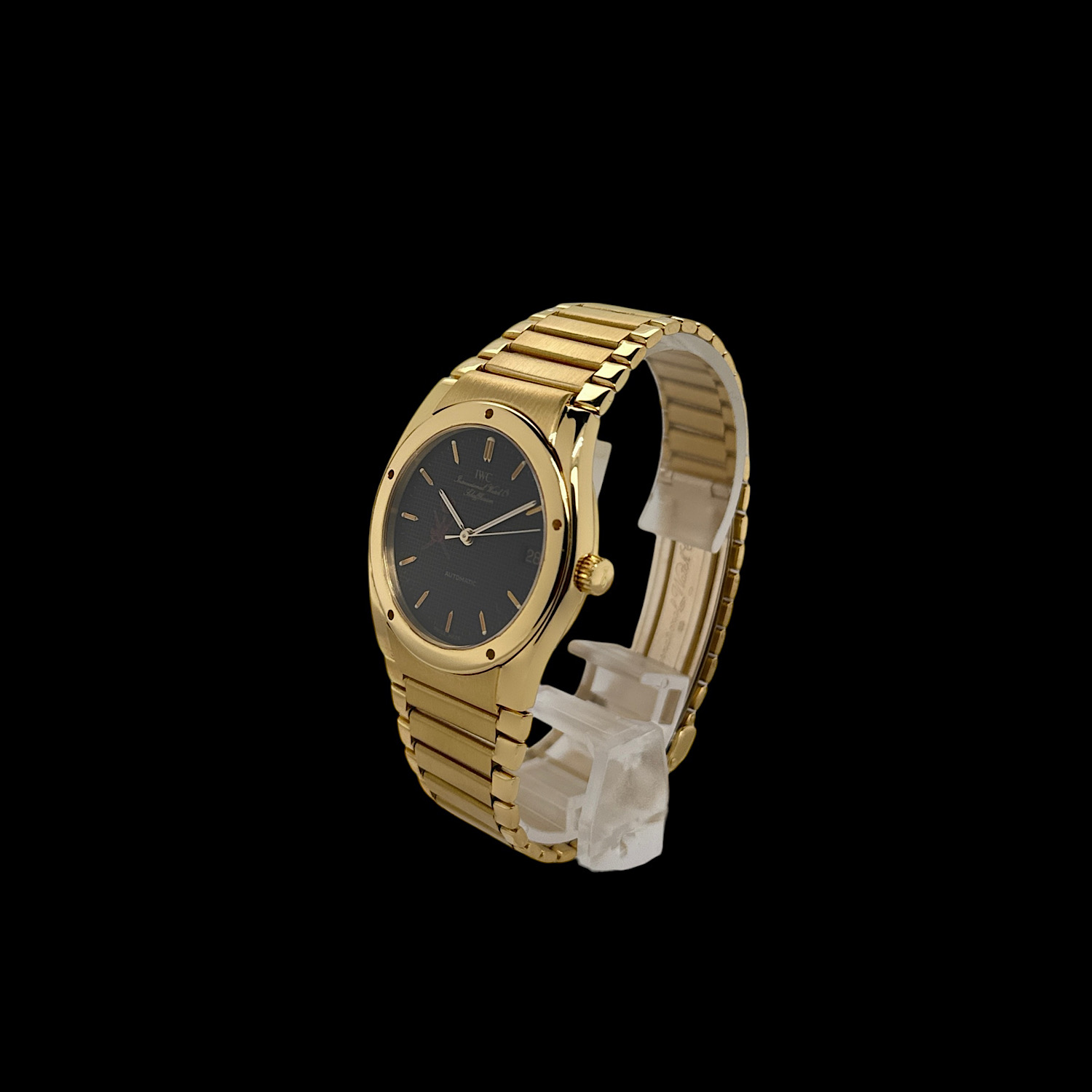 Das Gehäuse aus 18-karätigem Gelbgold befindet sich in einem sehr schönen Zustand. Im Rahmen der Revision wurde bei IWC eine professionelle Aufarbeitung vorgenommen.
