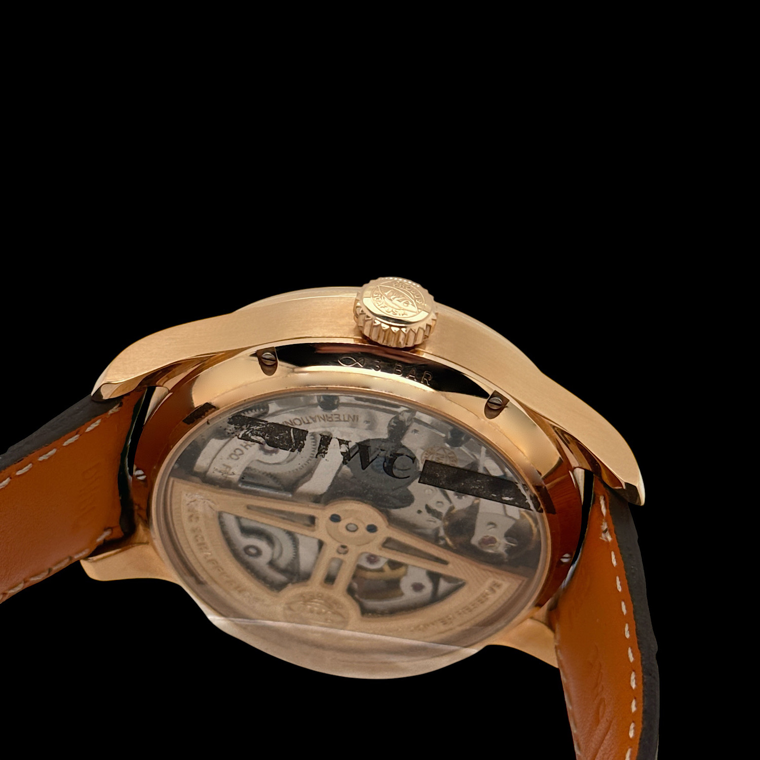 Die Saphirgläser weisen keinerlei sichtbare Kratzer oder Beschädigungen auf, der Saphirglasboden ist noch original von IWC verklebt.