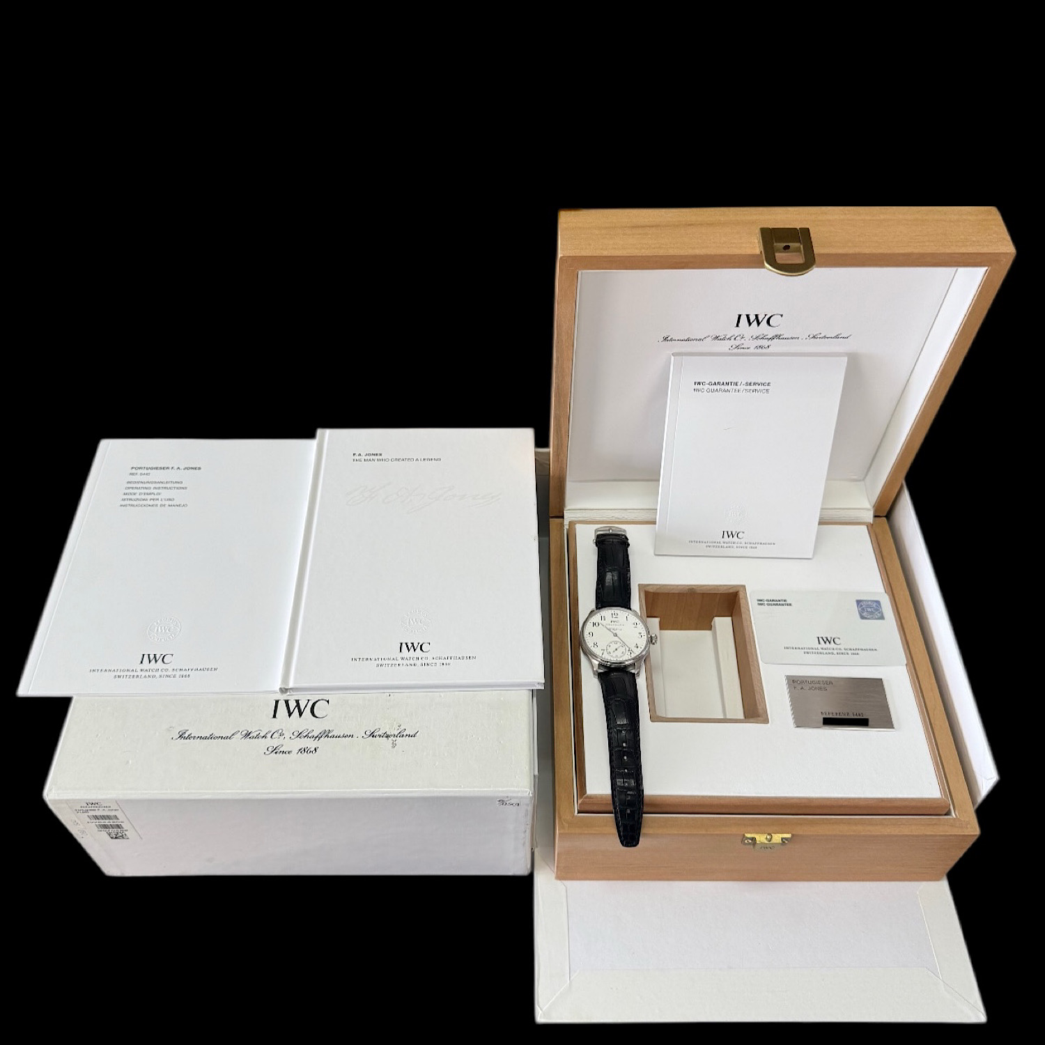 - Lieferumfang: IWC F.A. Jones Uhrenbox inkl. Limitierungsnummer und Umkarton, Garantiekarte aus 2006, Bedienungsanleitung, weitere Booklets