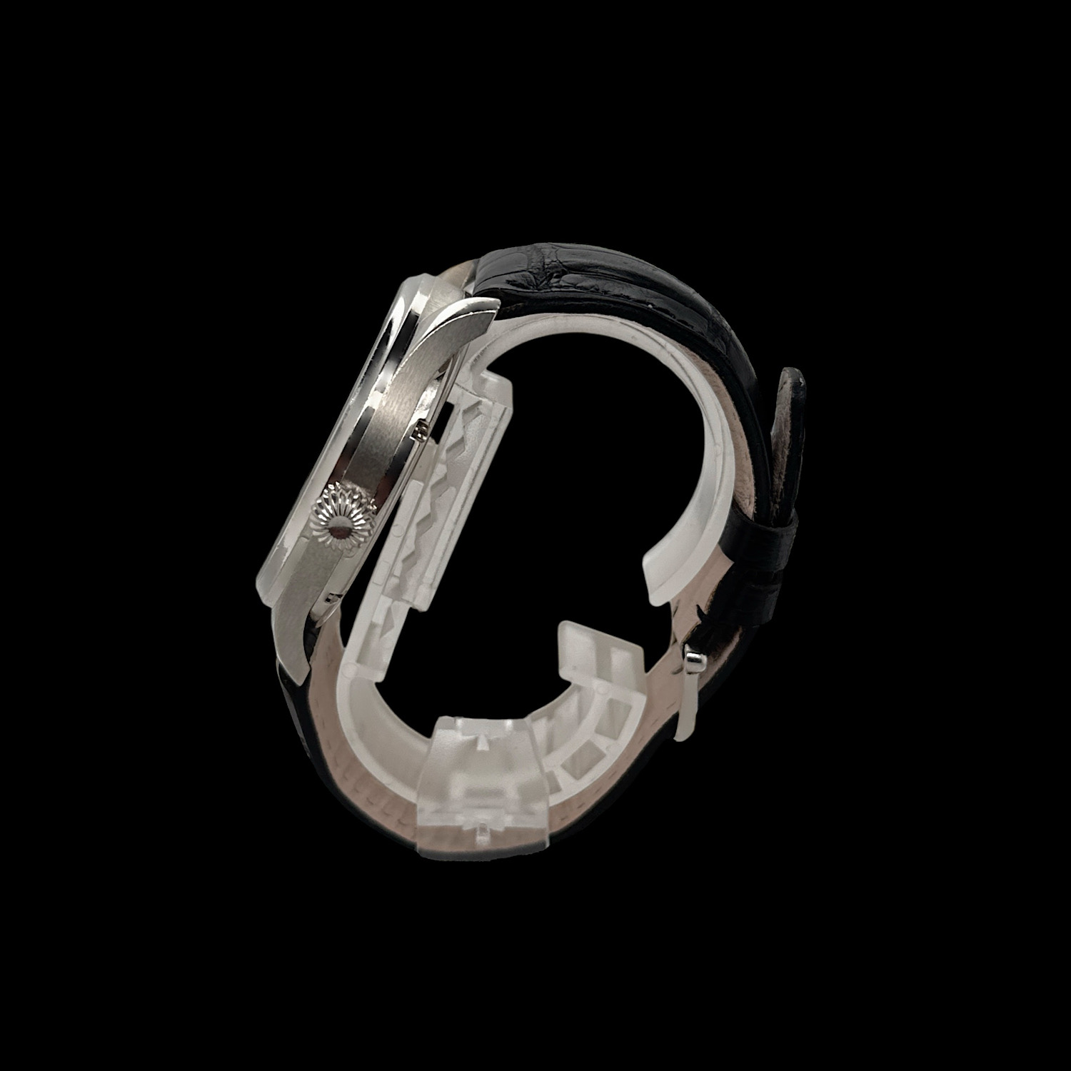 Aufgrund der CITES-Bestimmungen können Lederarmbänder aus geschützten Tierarten (z. B. Krokodil, Eidechse, Strauß) nicht außerhalb der EU versendet werden. In diesen Fällen liefern wir die Uhr mit einem hochwertigen Kalbslederarmband.
