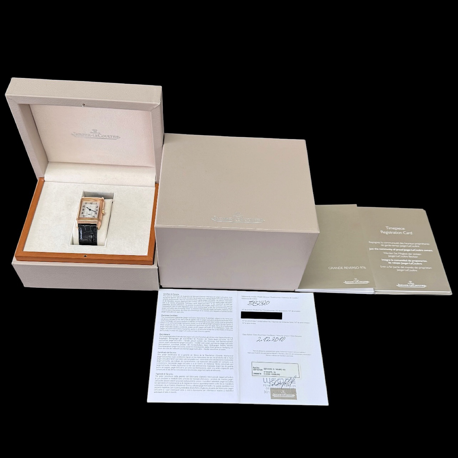 Zum Lieferumfang gehört die originale Box mit Umkarton, Garantiekarte (Wempe Hannover aus 12/2010), Bedienungsanleitung und Registrierungskarte.