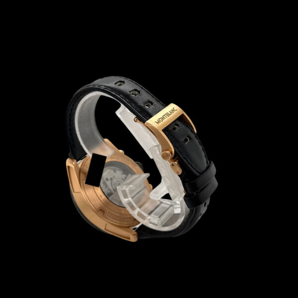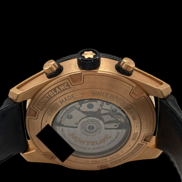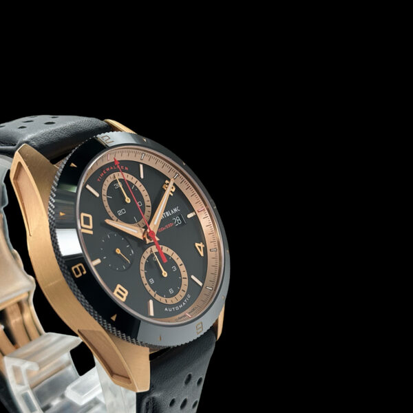 Das Herzstück bildet das zuverlässige Montblanc Kaliber MB 25.07, ein präzises Automatik-Chronographenwerk auf Sellita SW500 Basis. Mit 28.800 Halbschwingungen pro Stunde und etwa 42 Stunden Gangreserve bietet dieses Schweizer Uhrwerk höchste Ganggenauigkeit.