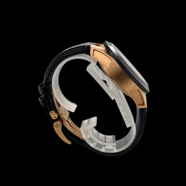 - Gehäuse aus 18-karätigem Rotgold mit schwarzer Keramiklünette