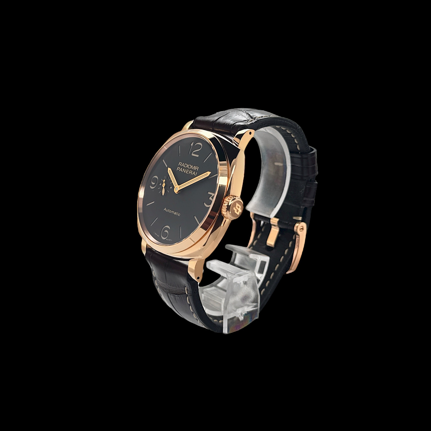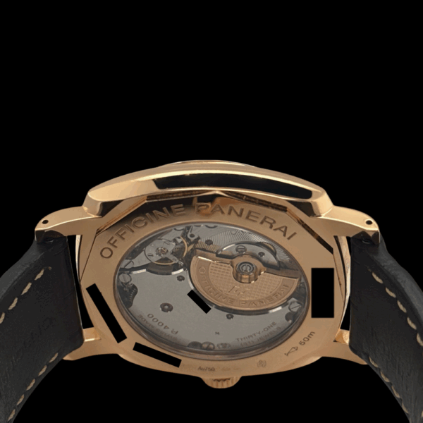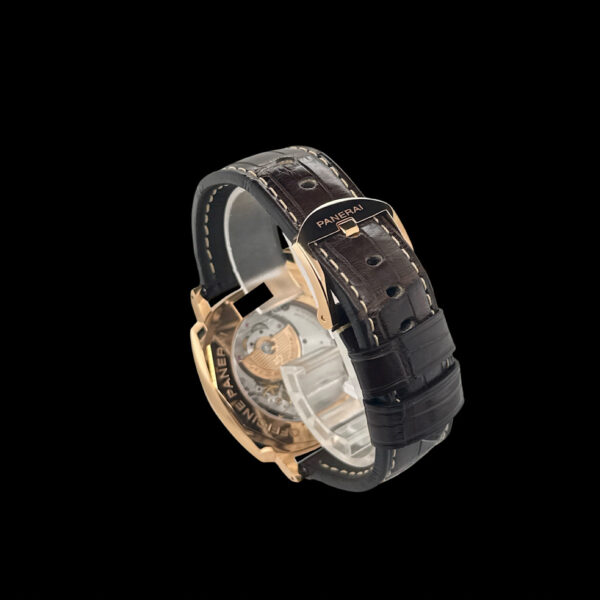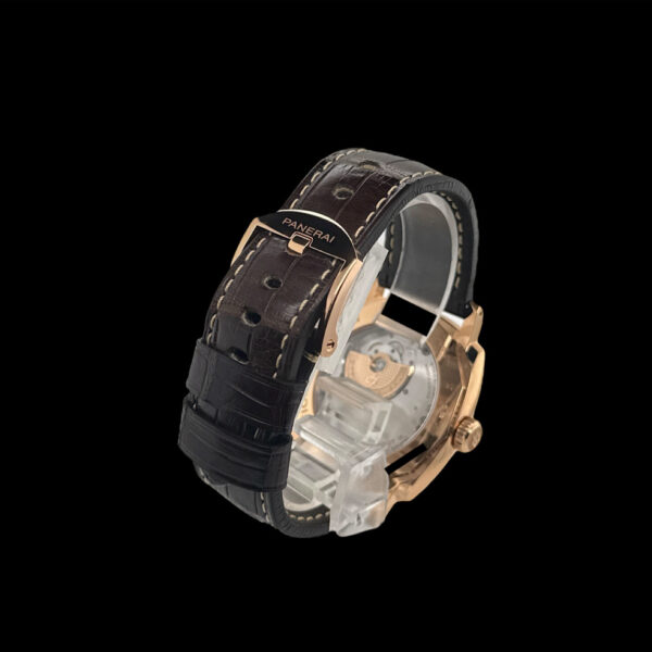 Das Panerai-Lederarmband mit passender Dornschließe aus 18-karätigem Roségold ist sehr gut erhalten.