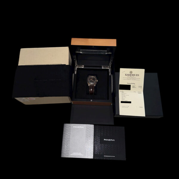 Ein besonderes Highlight für Sammler: Die PAM00573 Limited Edition wurde streng auf nur 500 Exemplare weltweit limitiert und gilt unter Paneristi als begehrtes Sammlerstück. Diese seltene Gelegenheit bietet ein komplettes Full Set mit originaler Panerai-Uhrenbox, Garantiekarte, Bedienungsanleitung und Originalrechnung aus 2018 – eine Konstellation, die am Markt äußerst selten anzutreffen ist. Der sehr gute Erhaltungszustand unterstreicht den außergewöhnlichen Wert dieser limitierten Herrenuhr, die sowohl anspruchsvolle Uhrensammler als auch Kenner exklusiver Zeitmesser gleichermaßen begeistert.