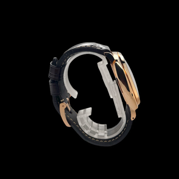 Das polierte Gehäuse aus 18-karätigem Roségold befindet sich in einem sehr guten Zustand mit nur leichten Tragespuren.