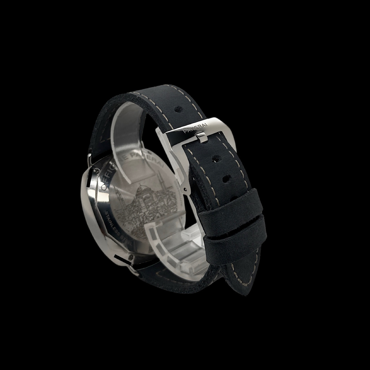 - Lieferumfang: Panerai Box, unausgefüllte Garantiekarte, Booklet, schwarzes Glattlederband zum Wechseln