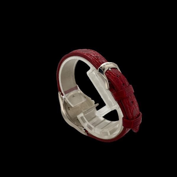 Das hauseigene Quarz-Kaliber E19 C mit sieben Lagersteinen wurde von Patek Philippe speziell für feinste Damenuhren entwickelt. Es verbindet Schweizer Präzision mit außergewöhnlicher Zuverlässigkeit und wartungsarmem Komfort – für Trägerinnen, die klassische Haute Horlogerie mit Alltagstauglichkeit vereinen möchten.