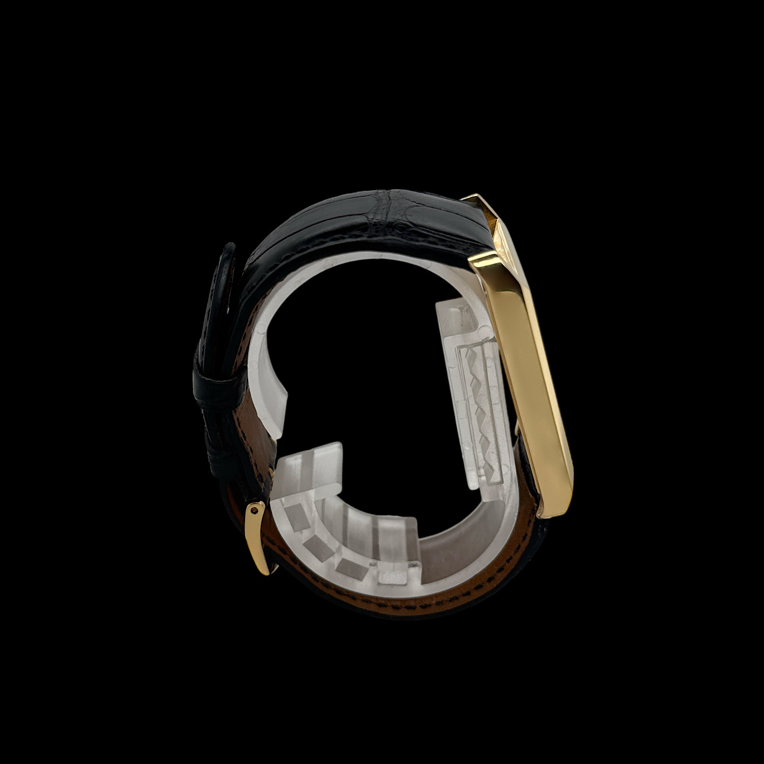 Das Armband wurde im Laufe der Zeit erneuert, es ist die originale Patek Philippe Dornschließe montiert. Gerne sind wir Ihnen bei der Suche nach einem originalen Patek Philippe Lederarmband behilflich.