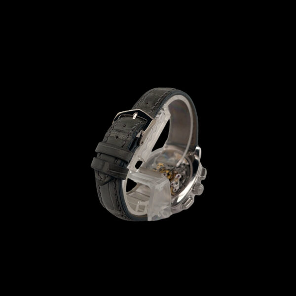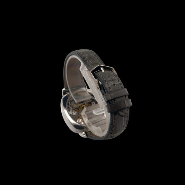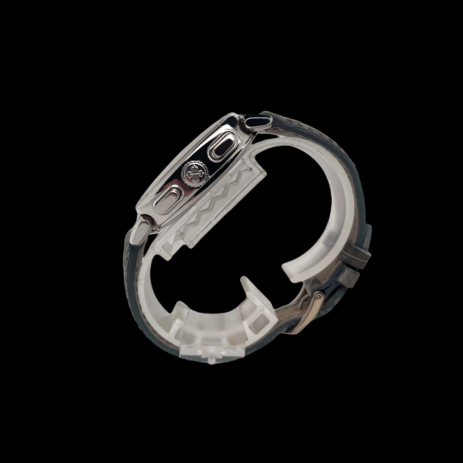 Das Patek Philippe Armband aus anthrazitgrauem Leder und die Patek Philippe Dornschließe aus 18-karätigem Weißgold befinde sich in einem sehr guten Zustand.