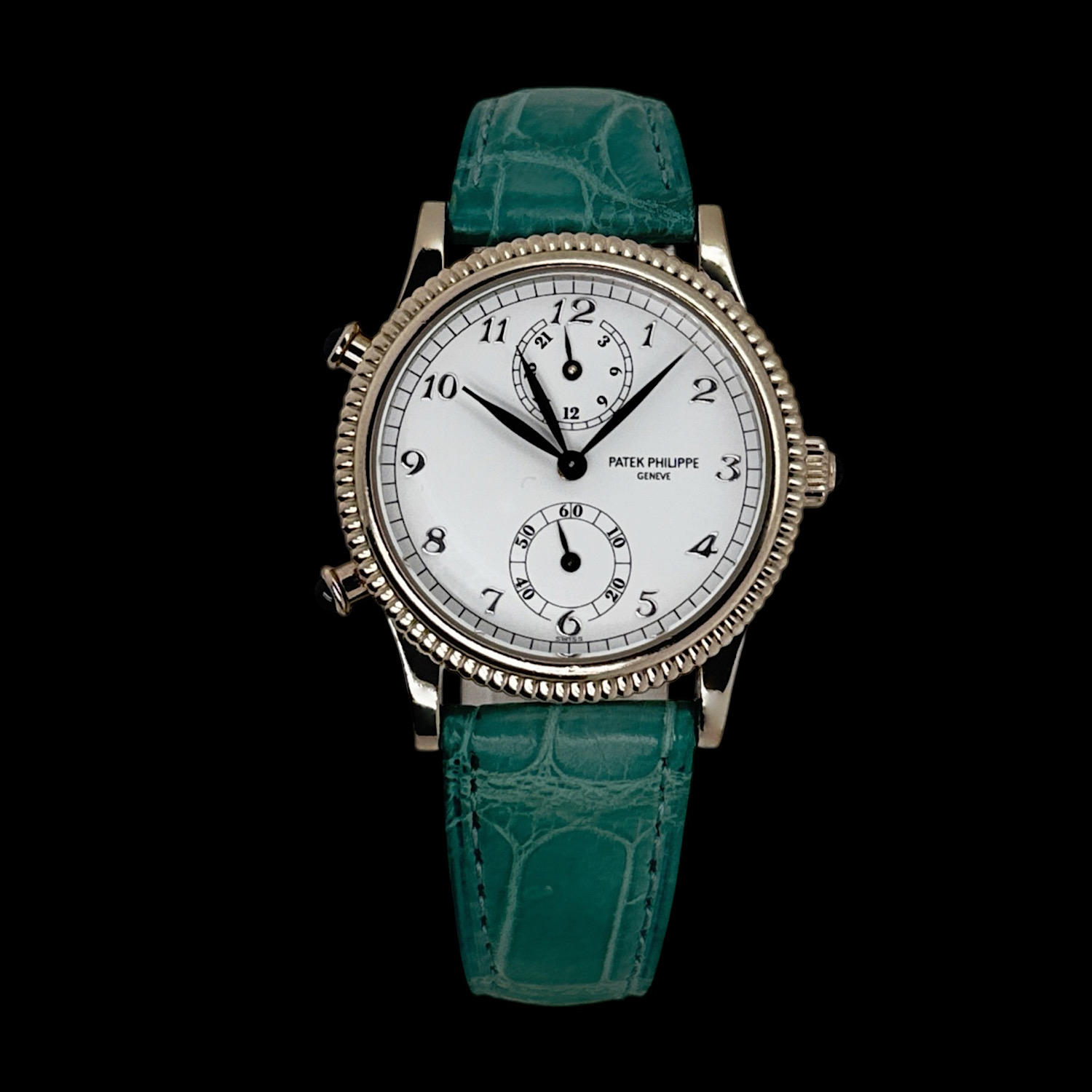 Seit 1997 trägt sie einen einzigartigen Titel: die erste komplizierte Armbanduhr, die Patek Philippe je für Frauen schuf. Die charakteristische Clous-de-Paris-Lünette thront auf dem 29mm-Gehäuse aus 18-karätigem Weißgold und erinnert an ein lückenloses Calatrava-Erbe.